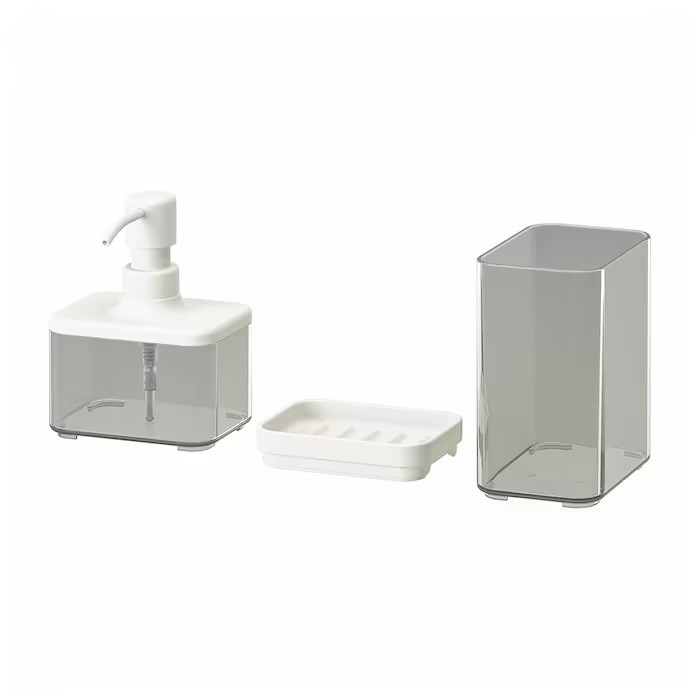 ست سه عددی سرویس بهداشتی و حمام مدل BROGRUND از سه تکه جای مایع دستشویی (شامپو)، جای مسواکی و جای صابونی ساخته شده است. یک طراحی هوشمندانه برای استفاده هوشمندانه است که از بی نظمی جلوگیری می کند بعلاوه ظاهری مدرن و تازه نیز به فضا می دهد جنس این محصول از پل پروپیلن است.