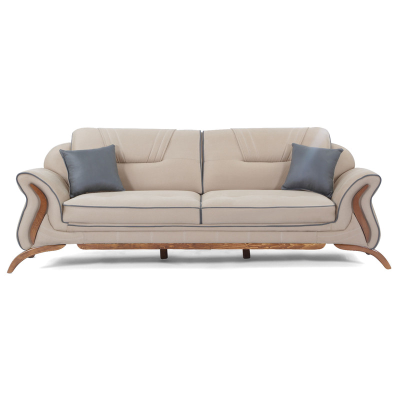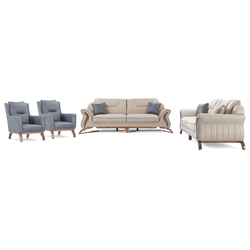 رنگ کاناپه های سه نفره طبق عکس موجود ثابت میباشد و شما با انتخاب رنگ و سفارش آن درواقع رنگ تک نفره ها انتخاب کردید تا با سه نفره ها ست شود مبل راحتی حلما با طراحی فوقالعاده ظریف خود میتواند زیبایی دکوراسیون داخلی شمارا دوچندان کند. استفاده از بهترین نوع اسفنج(35 ویژه) در کنار پارچه درجه یک وارداتی با طراحی خاص و زیبا، از جمله ویژگیهای اصلی این مدل به شمار میروند. این سرویس دارای دو مبل راحتی تکنفره، دو مبل سن نفره با طراحی مدرن میباشد. یکی از اصلیترین بخشهایی که رابطهی مستقیمی با دوام و طول عمر مبلمان دارد، چوب و اسکلت مبل میباشد. به همین منظور، استفاده از چوب راش گرجستانی و روسی که یکی از منحصر بهفرد ترین نوع چوب، برای استفاده از مبلمان راحتی میباشد، در ساخت این مبل مورد استفاده قرار گرفته است.از تسمه کشی لاستیکی در کلاف های مبل و زیر تمامی نشیمن ها استفاده شده.برای کلاف داخلی نیز از چوب نراد روس که از مقاومت بالایی در هر نوع شرایط سخت آب و هوایی است استفاده شده است. پایه های کار و در قسمت هایی از مبل هم برای تزئین از چوب راش تهیه شده است.
