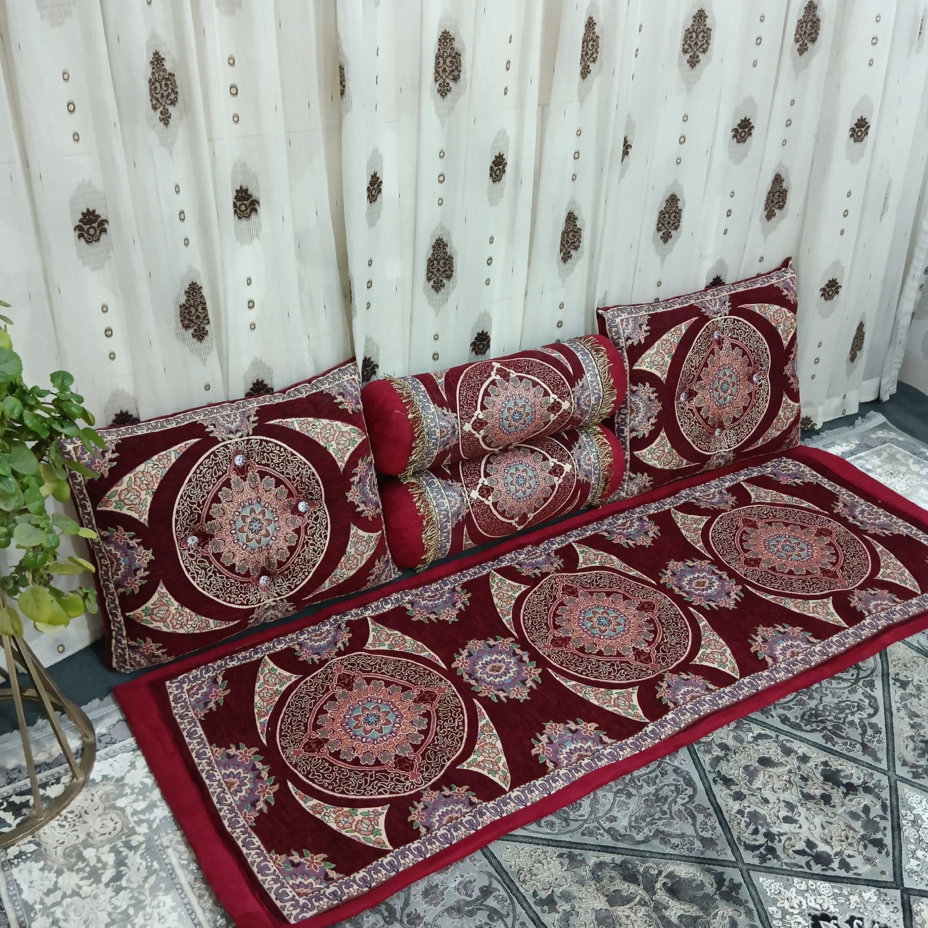 شاهنشین 5 تکه درباری شامل تشک و چهار عدد پشتی سنتی مبلمونسرا مدل 211634