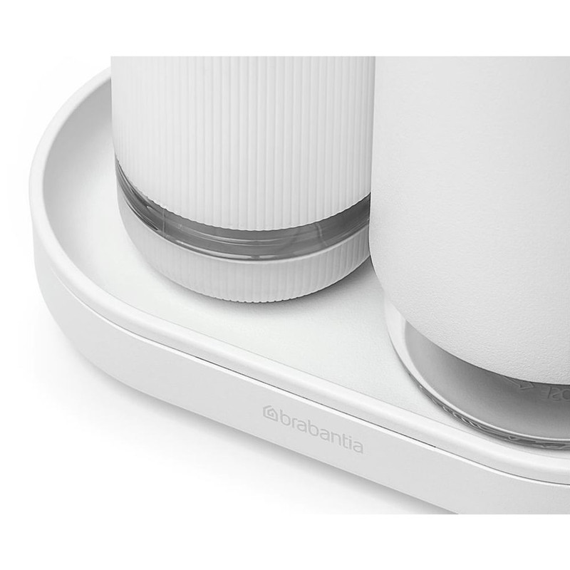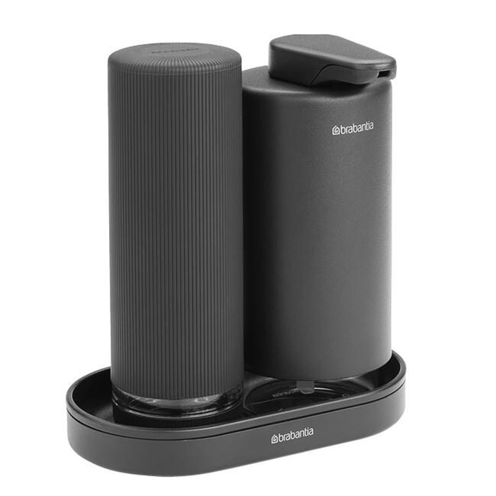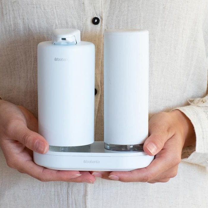 با ست جا مایع SinkStyle از برند Brabantia یک سبک شیک و جدید را به آشپزخانه خود بیاورید . دو جاصابونی شیک برای مایع دست و مایع ظرف شویی روی یک قفسه فلزی بسیار زیبا که قابل استفاده به عنوان جا صابونی نیز می باشد . این دو نه تنها صابون را پخش میکنند بلکه بسیار شیک نیز هستند . اولی از جنس پلاستیک بافت دار برای جا مایع دست که با فشار دادن آن صابون ظرف آزاد میشود گرفته تا دومی دارای مخزن شفاف برای جا مایع ظرف شویی . جا مایع برابانتیا مدل BRABANTIA SINKSTYLE طراحی بسیار شیک و ساده که می تواند نیاز در کنار سینک آشپزخانه و حمام و دستشویی را بر طرف کند . به دلیل اینکه دهانه بزرگی دارد به راحتی پر می شود و دارای پمپ قوی و ضد چکه می باشد .