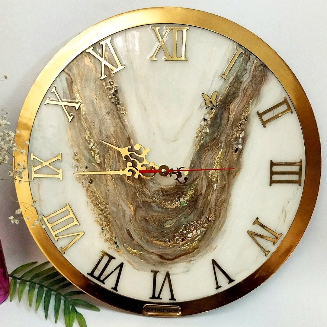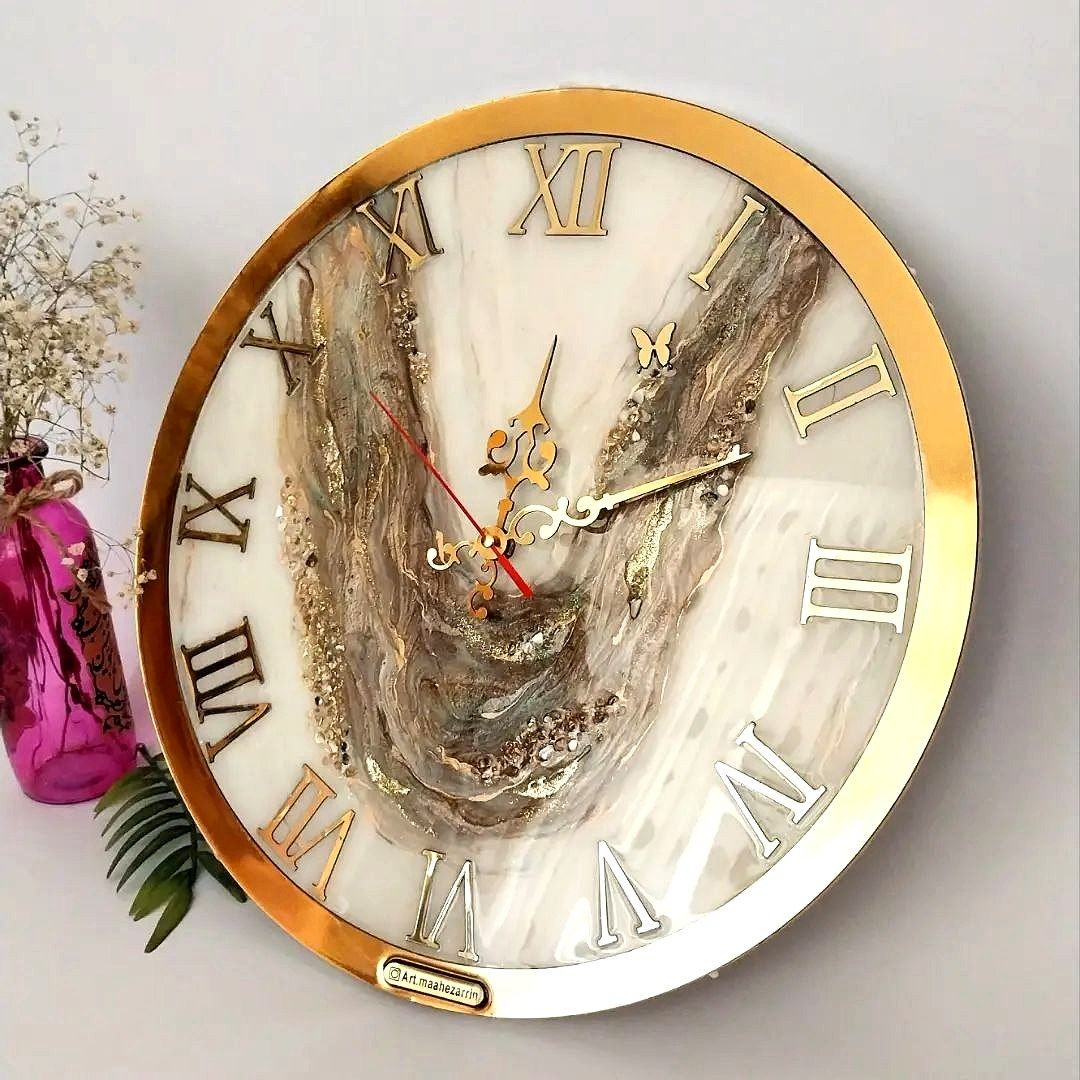 ساعت رزینی قطر 40 ساتت مناسب برای دکور قهوه ای طلایی و کرم رنگ