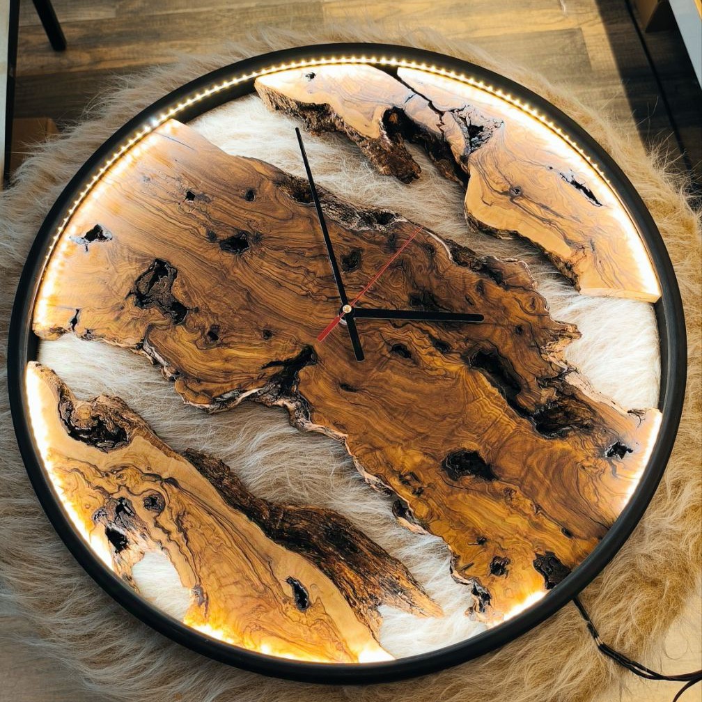 ساعت روستیک دیواری قطر50سانت چراغ دار شیک ولاکچری مناسب محل کار و منزل صفحه ساعت از چوب هزارموج زیتون موتور نامبروان درجه یک آرامگرد لامپ SMDکم مصرف تایوانی کیفیت یک ارسال سراسرایران