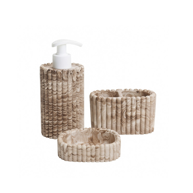 ست سرویس بهداشتی یکی از اجزای مهم و تأثیرگذار در زیبایی و نظم فضای حمام و سرویس بهداشتی است. این محصول شامل سه تکهی پرکاربرد یعنی جامسواکی، جا صابونی و جا مایع دستشویی بوده که بهصورت هماهنگ طراحی شدهاند و جلوهای منسجم و شیک به محیط شما میبخشند. جنس این ست بتنی است و برخلاف نمونههای پلاستیکی موجود در بازار، از استحکام، وزن مناسب و کیفیت بالاتری برخوردار است. طراحی مدرن و بافت خاص سطح آن، علاوه بر دوام، ظاهری لوکس و متفاوت ایجاد کرده که میتواند دکوراسیون سرویس بهداشتی شما را ارتقا دهد. اگر به دنبال محصولی هستید که هم زیبا و دکوراتیو باشد و هم در استفاده روزمره کیفیت و کارایی بالایی ارائه دهد، این ست ۳ تکه بتنی انتخابی ایدهآل برای شما خواهد بود.