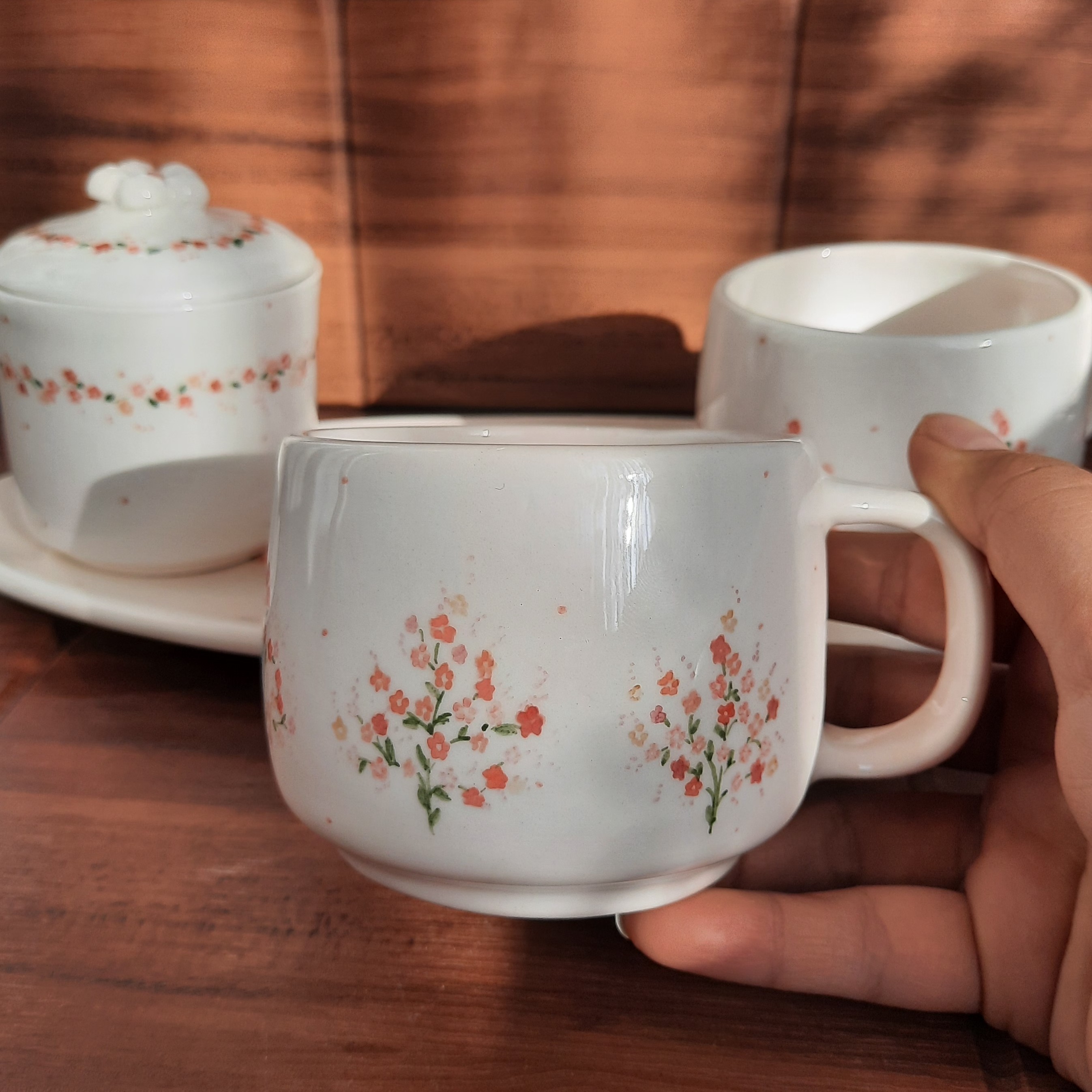 ست چایخوری دو نفره سرامیکی شکوفه صورتی مبلمونسرا مدل 278210