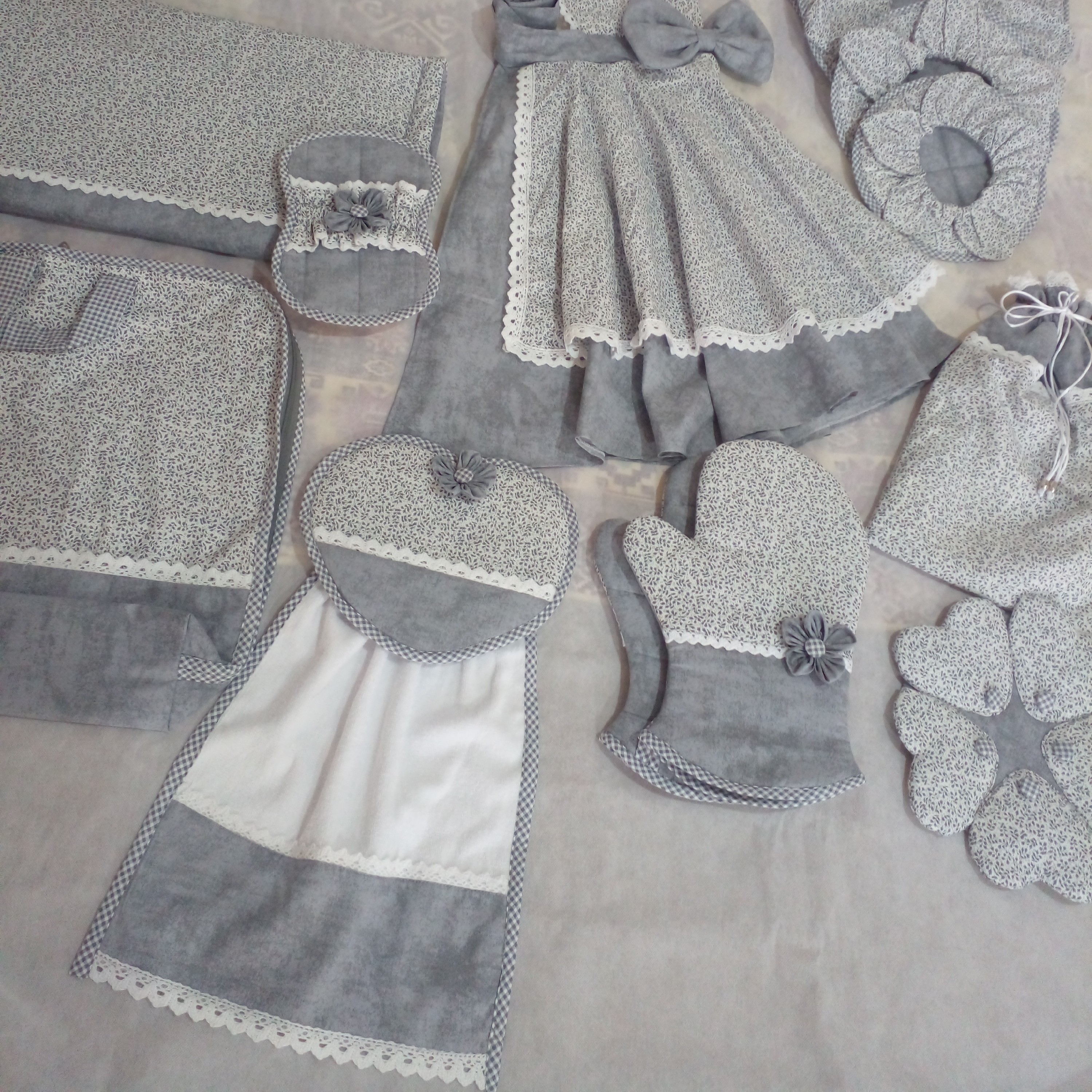 سرویس اشپزخانه ریز گل 18 تکه ارسال با تیپاکس جنس پارچه هامون کتان نخ هست✅ متریال به کار رفته درجه یک هست✅ مقاوم در برابر حرارت✅ نوار دور کار کتان هست✅ این سرویس شامل: دمکنی پنج پر چهار عدد دستگیره قلب یک جفت دستگیره مربع یک جفت پیشبند فانتزی سفره پاک کن کیف نان یخچالی کاور قابلمه دو طبقه کیسه سبزی دستکش فر یک جفت زیر قابلمه طرح قلب حوله دو تکه نمگیر 60*80
