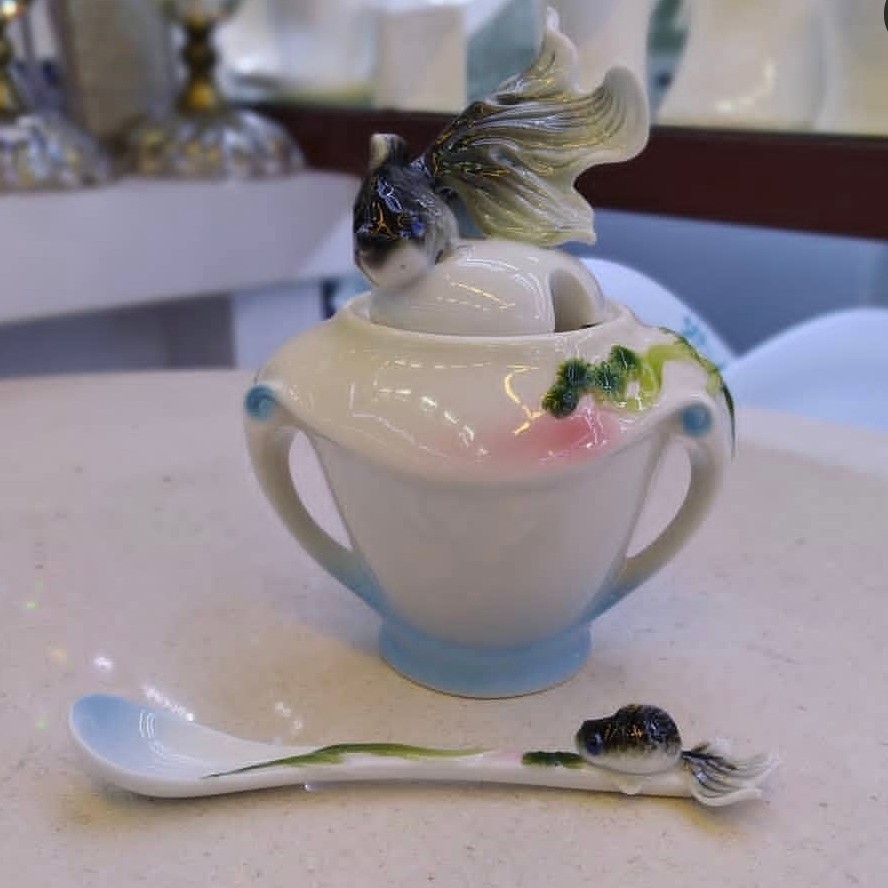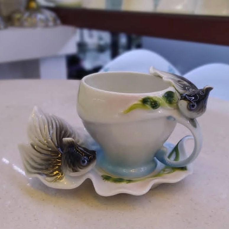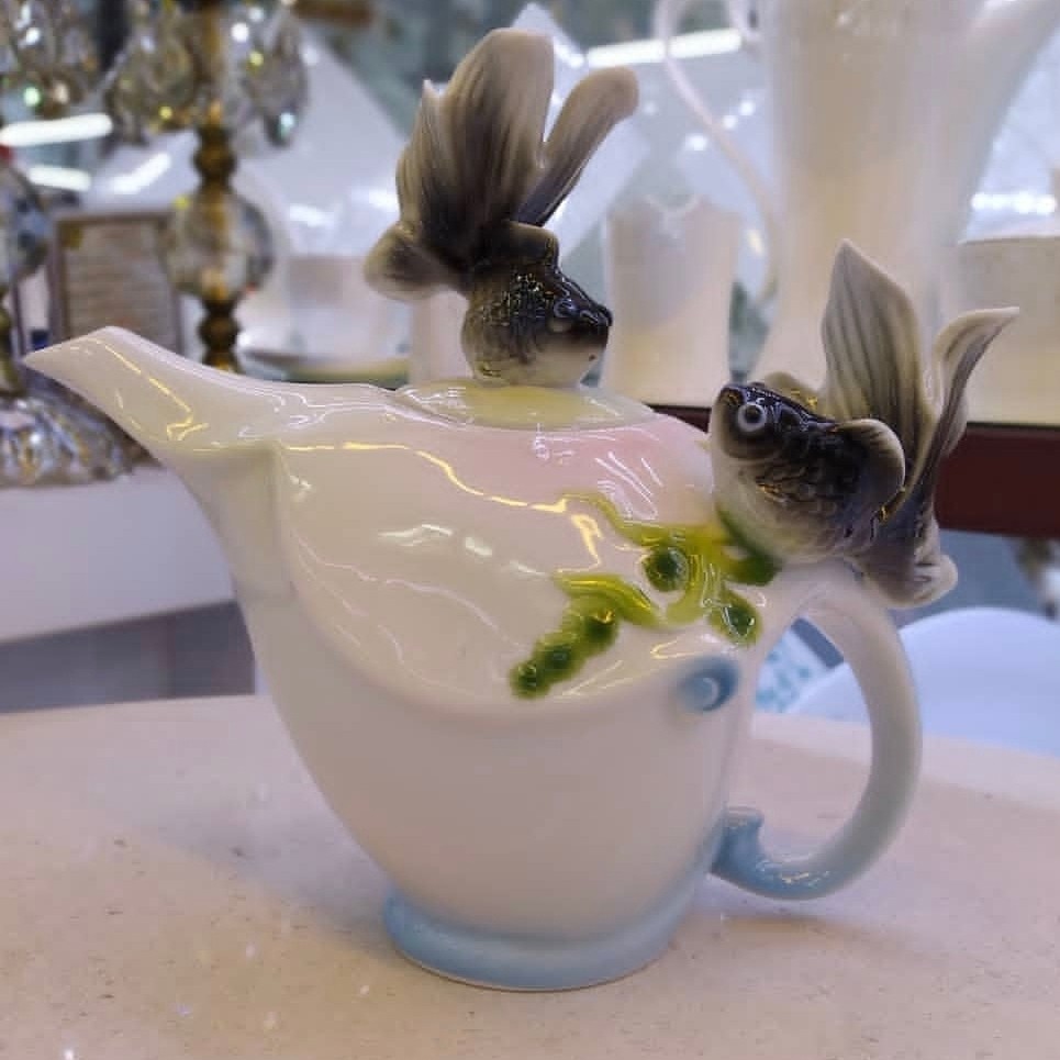 سرویس چای خوری طرح ماهی رنگ آبی مشکی کم یاب ست 6نفری بینظیر کادویی دکوری جهیزیه ارسال مبلمونسرا مدل 264862