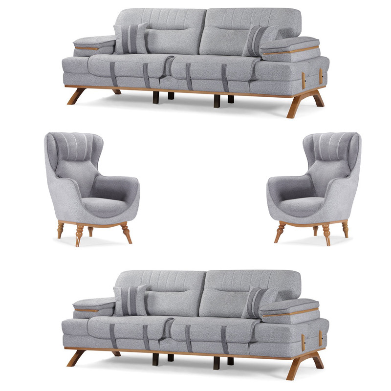 توجه:(لطفا برای ارسال سریعتر،سالمتر و مطمئن تر کالا باتوجه به وزن بالا محصول،قبل از ثبت نهائی سفارش از قابلیت ارسال توسط فروشنده استفاده کنید.) مدل کادیز یک مبل راحتی 8 نفره با مکانیزم تختخوابشو میباشد. لمس چوب راش در کنار دسته های کاناپه ها احساس بسیار خوبی مانند لمس طبیعت به شما می بخشد. پشتی و دسته های هر دو کاناپه 3 نفره کادیز، تختخوابشو یا مکانیزم هستند و در حالت تختخواب دارای فضای بسیار مناسب و کافی برای استراحت میباشد.دوخت بسیار با کیفیت و زیبا در کنار مغزی دوزی هایی که با ظرافت خاصی در همه جای این مدل به چشم میخورد، حاصل طراحی مدرن و خلاقانه ی طراحان مجموعه میباشد.یکی از مهمترین نکات در طراحی و تولید مدل کادیز، طبی بودن تکیه گاه و نشیمن آن است به طوریکه برای کسانی که مشکلات ستون فقرات دارند بسیار راحت و مناسب است. مبل کادیز یک محصول شیک و کلاسیک با طراحی زیبا و جذاب است که به آسانی میتواند جزو مبلمان مورد علاقه شما باشد. این مبل 8 نفره است و شامل دو کاناپه، دو تا مبل تک نفرهاست.پایههای این مبل کاملاً از چوب راش ساخته شدهاند و کلاف داخلی آن نیز از چوب روس ساخته شده است. 4 پایه در وسط کاناپه این محصول مجهز شده است تا ثبات بیشتری برای کاناپه ایجاد کنند.درکل، مبل کادیز یک محصول بسیار راحت و شیک است که میتواند تزئینی عالی برای منازل و اتاقهای مختلف باشد. استفاده از چوب راش با کیفیت در پایه ها و دیزاین ظاهری مبل، کلاف چوب روس خشک شده، اسفنج های 35 کیلویی ویژه برای نشیمن، اسفنج 30 کیلویی برای تکیه گاه و اسفنج 30کیلویی برای دسته های مبلمان، باعث شده تا مدل کادیز عمر طولانی و راحتی فوق العاده ای را به شما هدیه دهد. این ست مبلمان یک سرویس کامل بوده و برای خرید جهیزیه و زیبایی بیشتر دکوراسیون منزل شما پیشنهاد می شود.