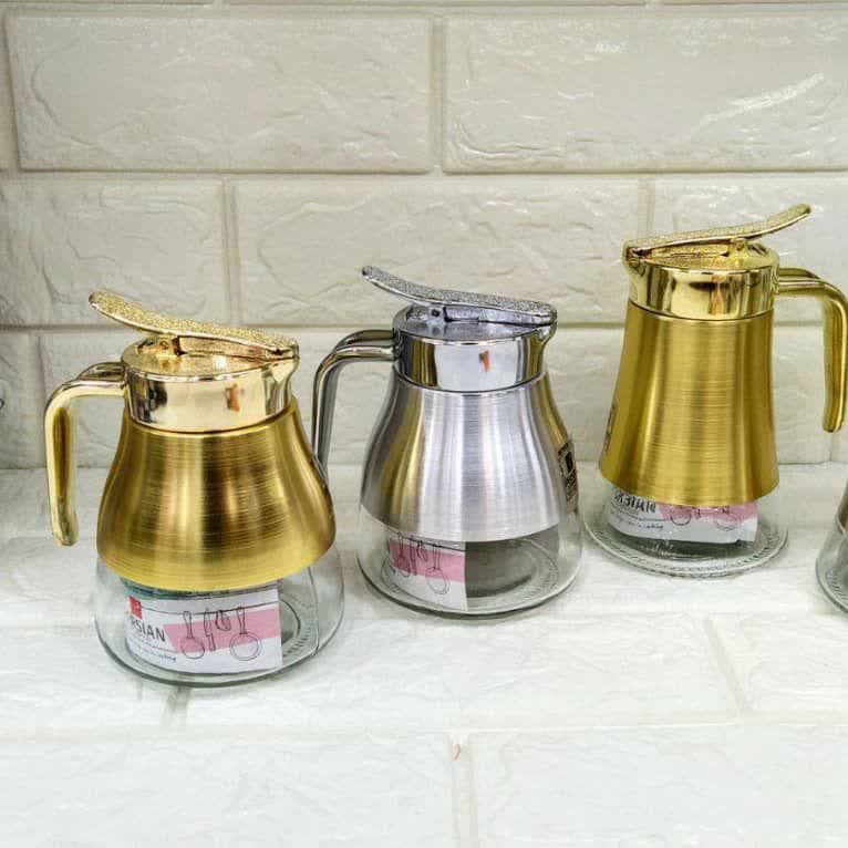 شکرپاش شیشه ای با روکش طرح استیل و درب لاکی در دو طرح و رنگ