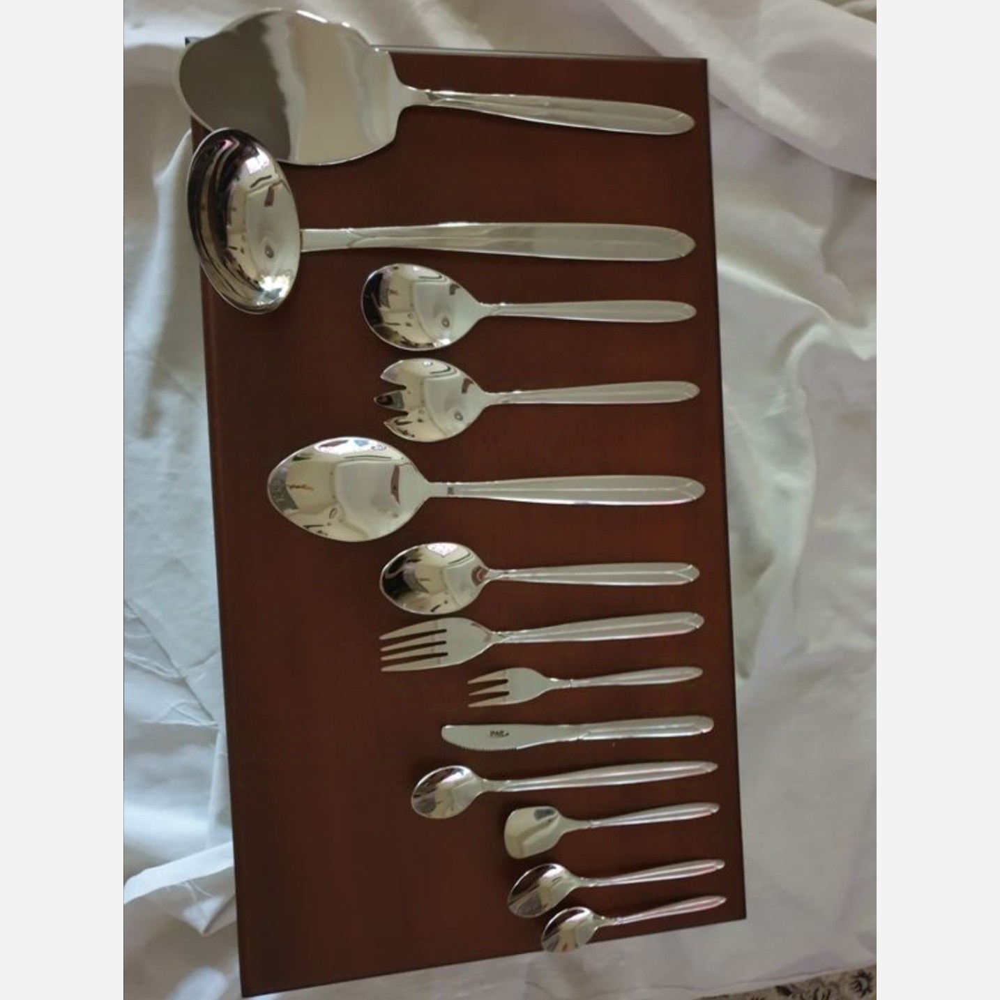 مواد اولیه: فولاد ضدزنگ - تولید شده با تکنولوژی زولینگن آلمان - مناسب برای 18 نفر - شامل: - 18 عدد قاشق غذاخوری - 18 عدد چنگال غذاخوری - 12 عدد قاشق چایخوری - 12 عدد قاشق قهوهخوری - 12 عدد قاشق بستنیخوری - 12 عدد قاشق شربتخوری - 12 عدد چنگال میوهخوری - 12 عدد کارد میوهخوری - 2 عدد کفگیر - 2 عدد ملاقه سرو سوپ - 2 عدد قاشق سرو خورش - 1 عدد قاشق سالاد - 1 عدد چنگال سالاد
