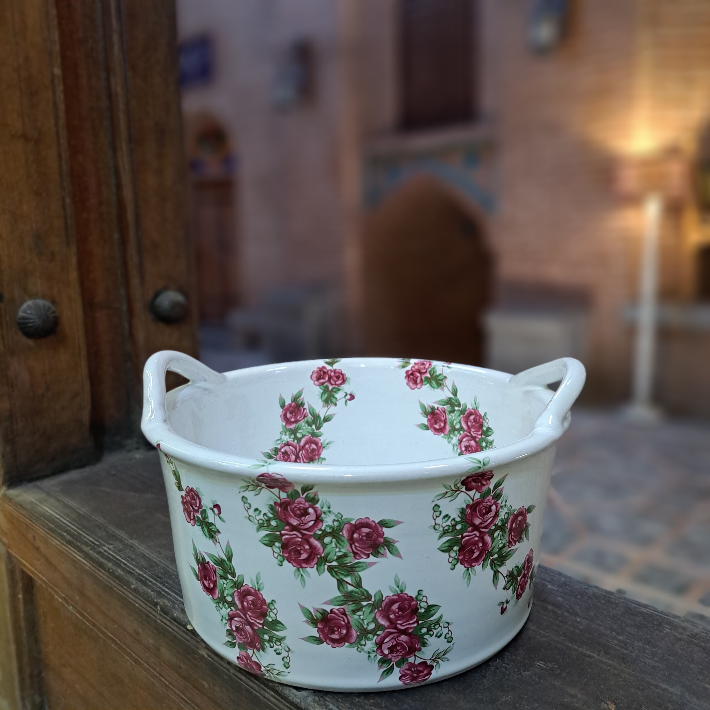 کاسه دو دسته گل سرخی سفالی مبلمونسرا مدل 292269