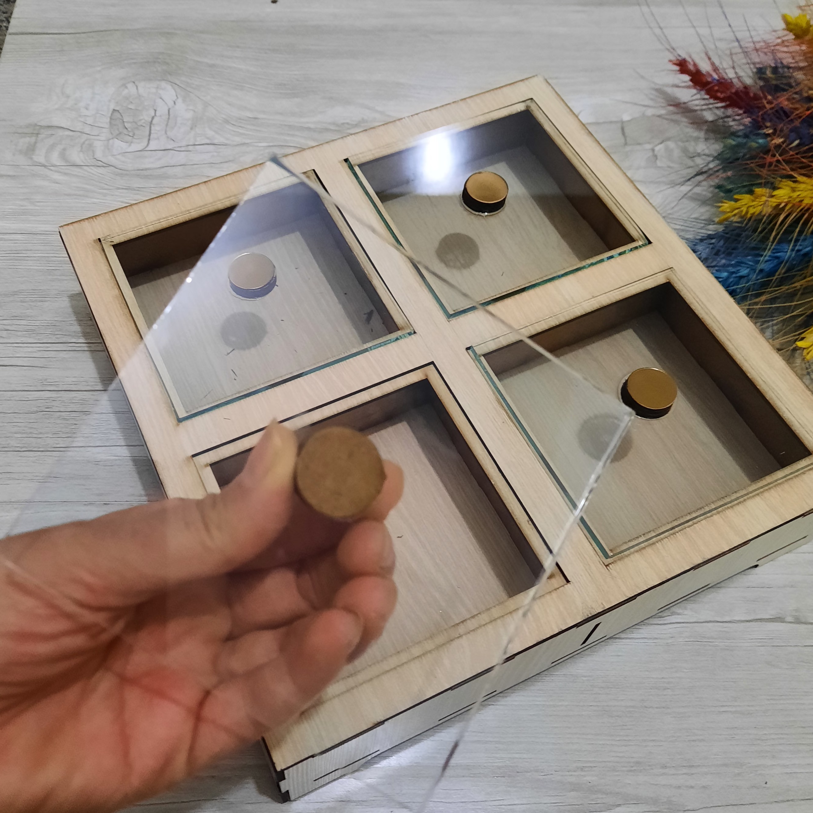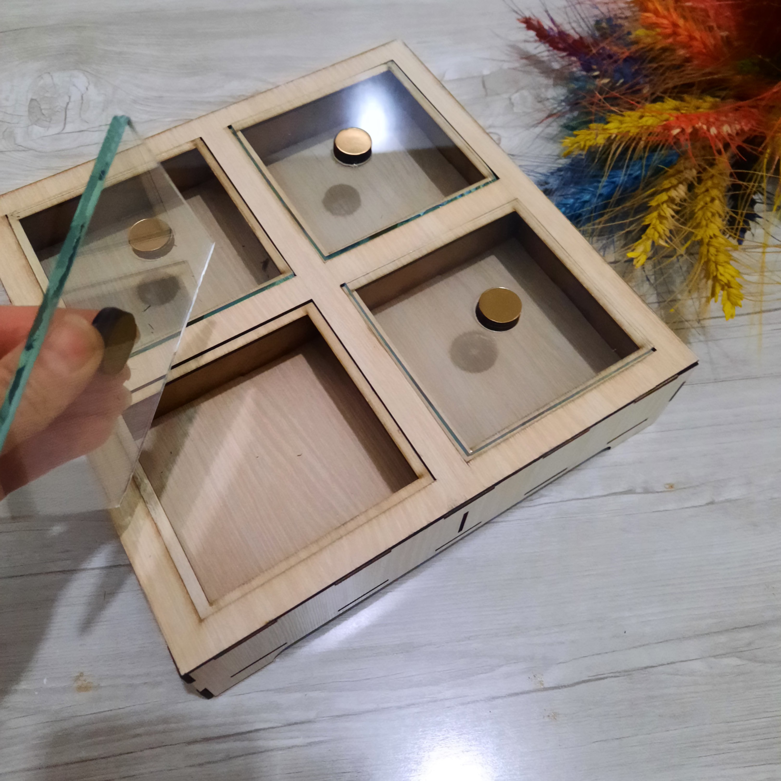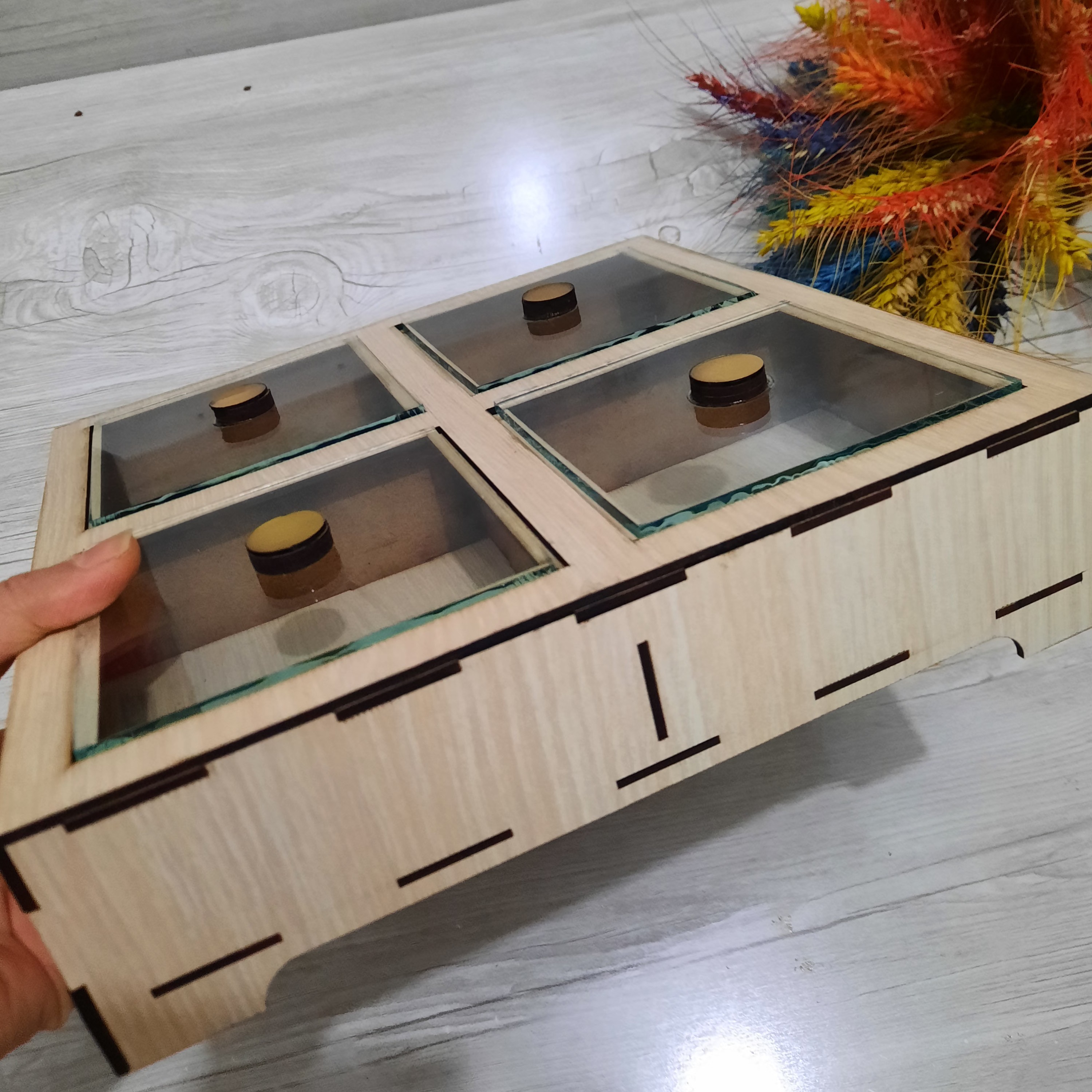 تقسیم چوبی4خانه رنگ روشن در شیشه ای بسیارشیک💯 ارسال به کل ایران