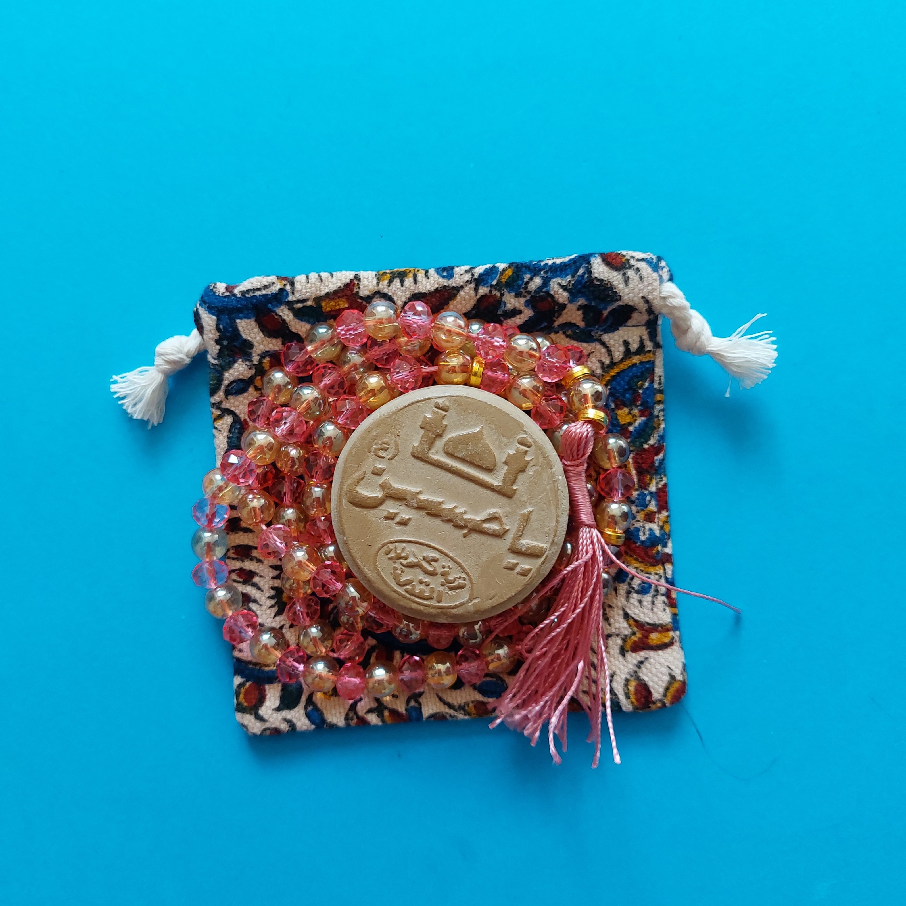 کیف تسبیح چاپ قلمکار بسیار زیبا که برای تسبیح و مهر بسیار مناسب و راحت.