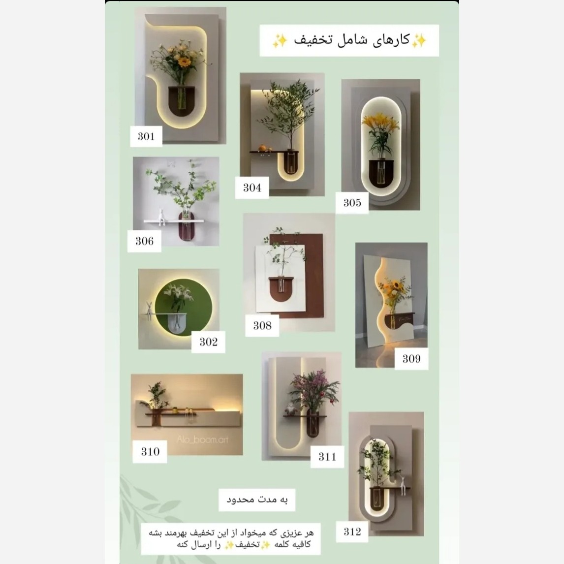 کف قیمت بازار تضمین کیفیت ،تضمین قیمت مدل های مختلف رو داخل عکسها میتونید مشاهده کنید تابلو دکوراتیو گلدان دیواری یه محصول جدید و ترند ای روزا برای تغیر منزل و محیط اطراف و کاری شما در رنگهای مختلف قابل اجراست نور کار با لامپ ال ای دی با سیم هست درصورت درخواست شما نور بیسیم با باتری قابل شارژ و کنترل قابل نصب هست که 850 تومن به قیمت کار اضافه میشه