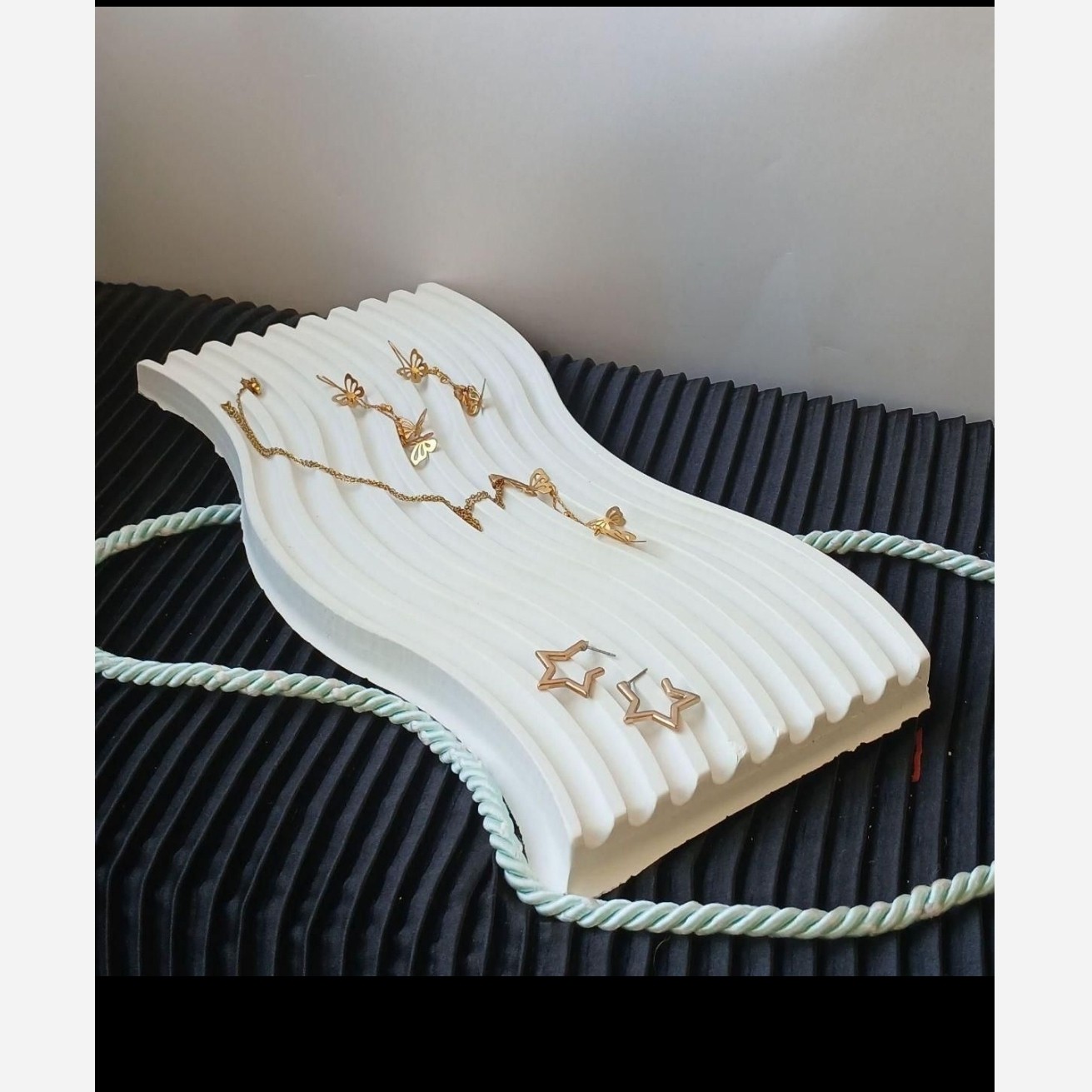 سینی پذیرایی موج ب عنوان استند عکاسی یا جای جواهراتی مناسبه برای دکوراتیو و روی کنسول و ست کردن با جاشمعی ها و گلدانها قابل شست و شو و ضد آب در طرح و رنگ دلخواهتون قابل سفارش هست جنس سنگ مصنوعی