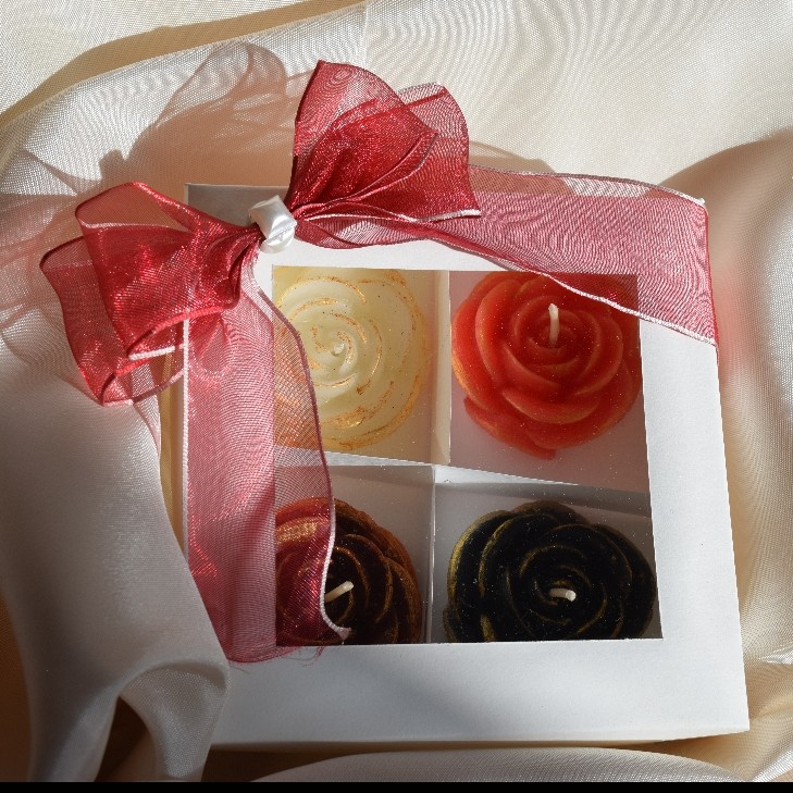 مجموعه چهار عددی شمع دکوراتیو طرح گل،مناسب برای شمعدان و روی آب،با بسته بندی شکیل.