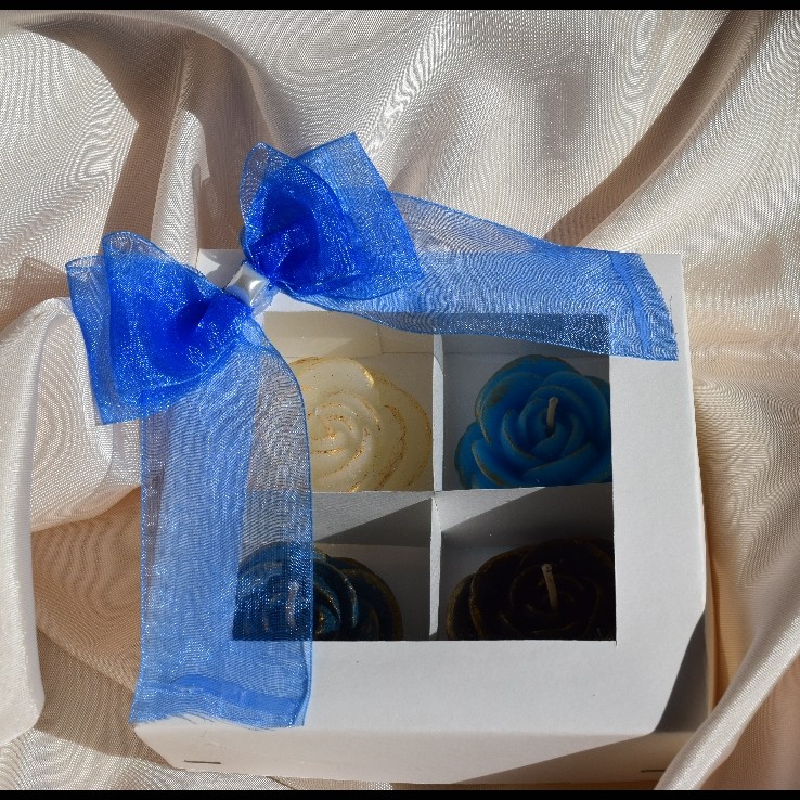 مجموعه چهار عددی شمع دکوراتیو طرح گل،مناسب برای شمعدان و روی آب،با بسته بندی شکیل.