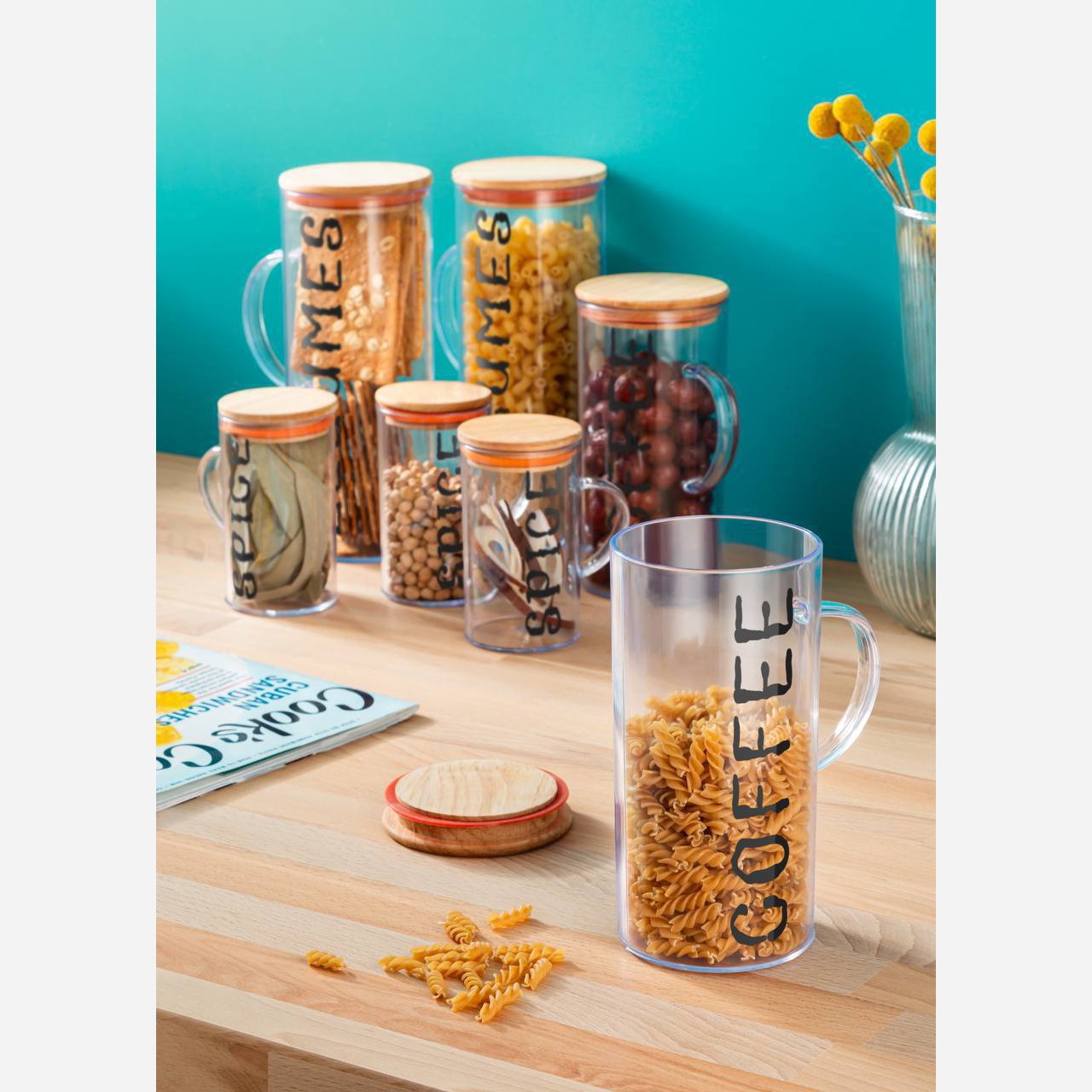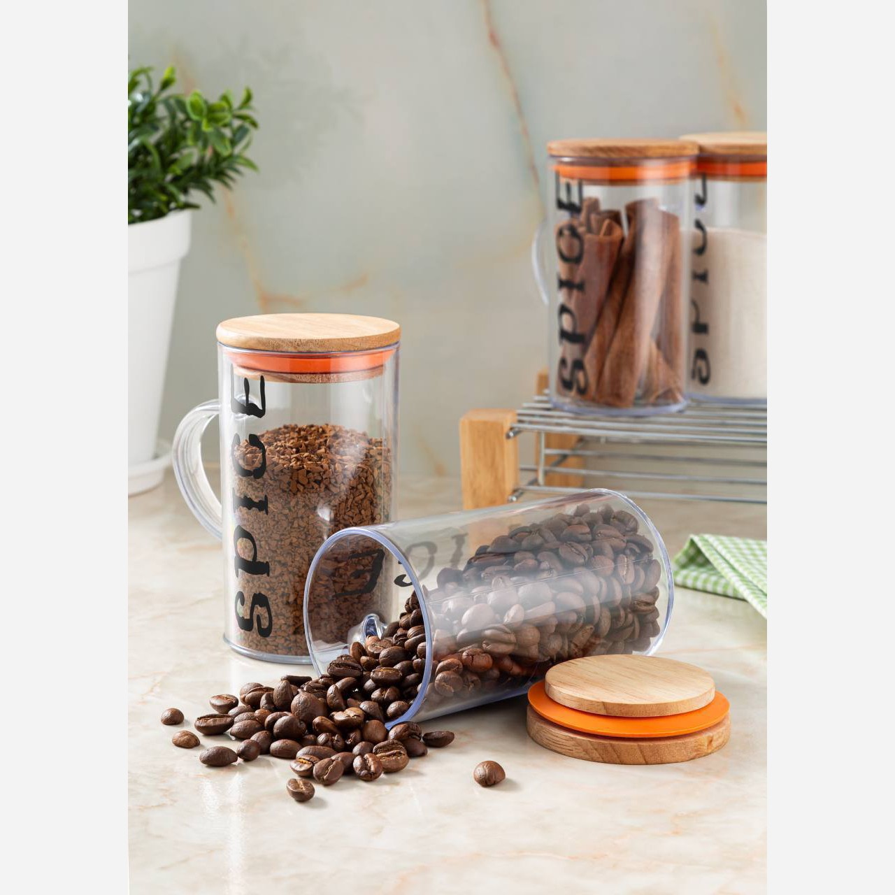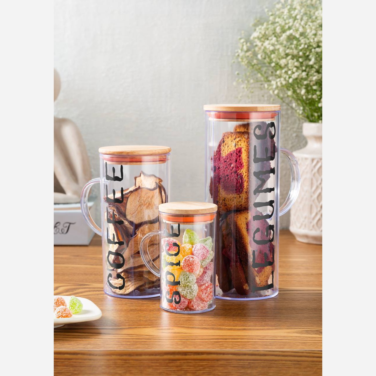 بانکه حبوبات اکرولیک 3تایی دسته دار در چوبی واشردار بانکه ادویه اکرولیک دسته دار ظرف حبوبات پاسماوری اکرولیک دسته دار مبلمونسرا مدل 293292
