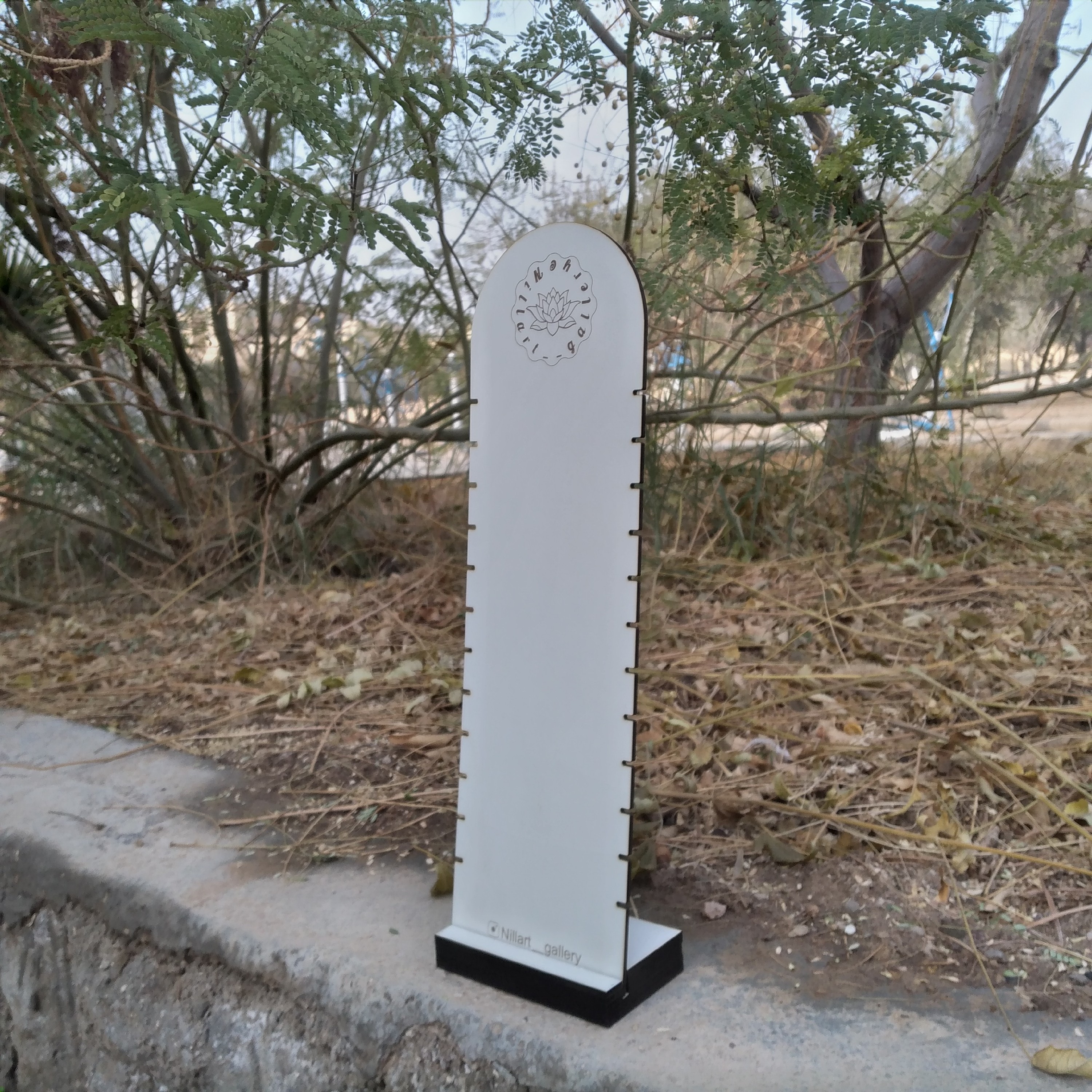 استند مناسب آویز گردنبند و دستبند از جنس ام دی اف 3 میل با رنگ سفید و مشکی ابعاد کار 35 در 10 سانتی متر ارسال به صورت می باشد