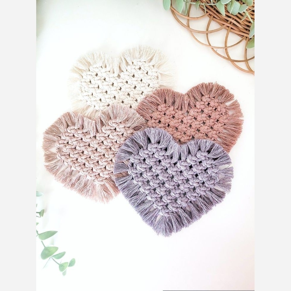 زیر لیوانی مکرومه طرح قلب دستبافت با نخ مکرومه رنگی اعلا با ریشه 15 سانت تقریبا