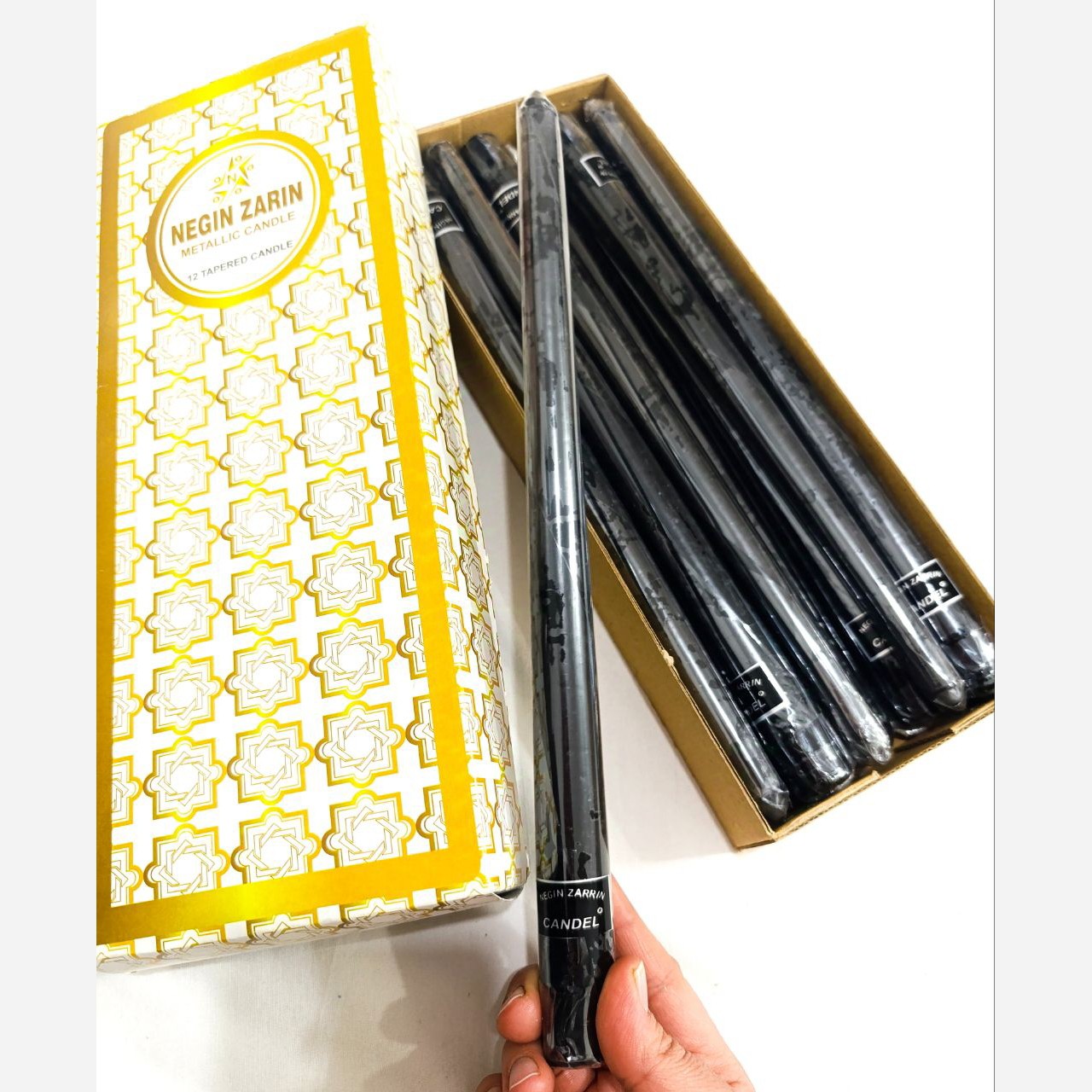 شمع نگین زرین متالیک کندل مشکی شمع 20سانت مبلمونسرا مدل 279568