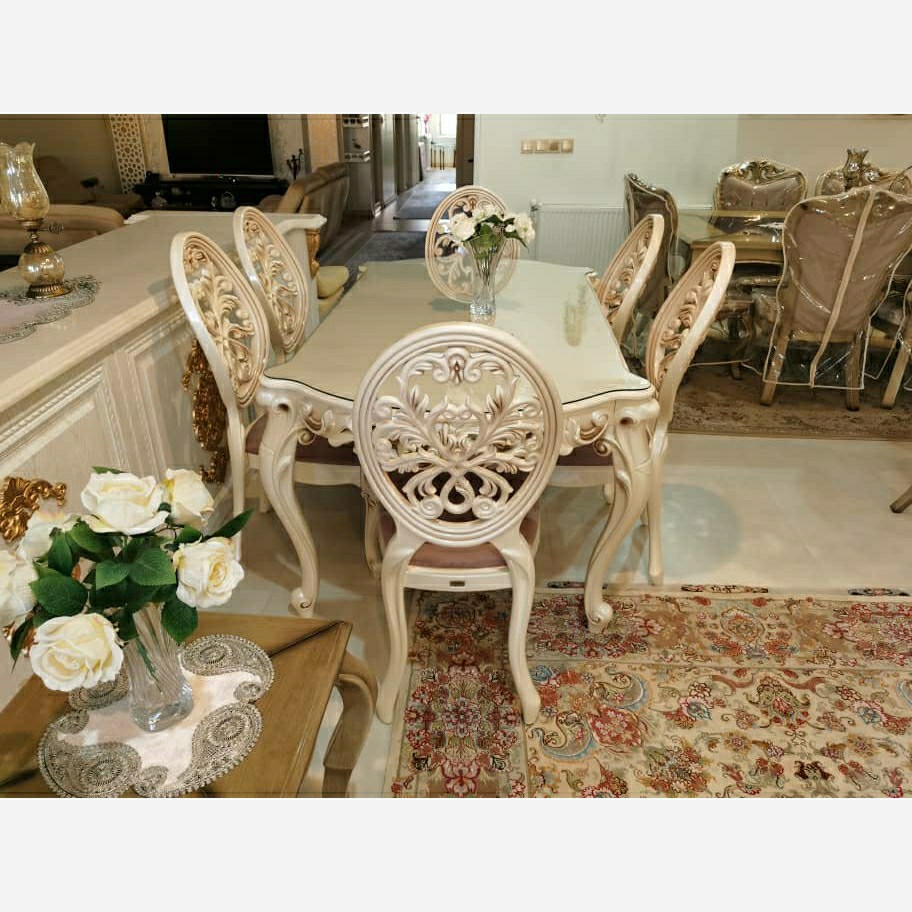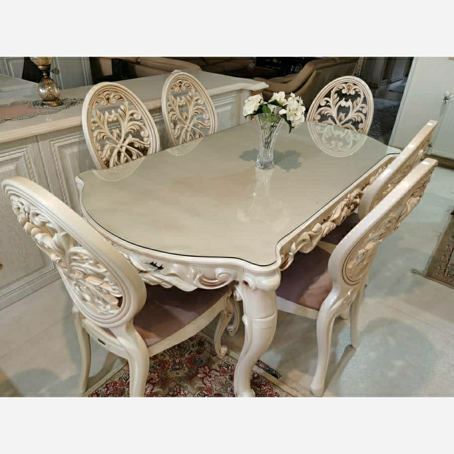 میز و صندلی نهارخوری پلیمری شش نفره صدفی مبلمونسرا مدل 235845