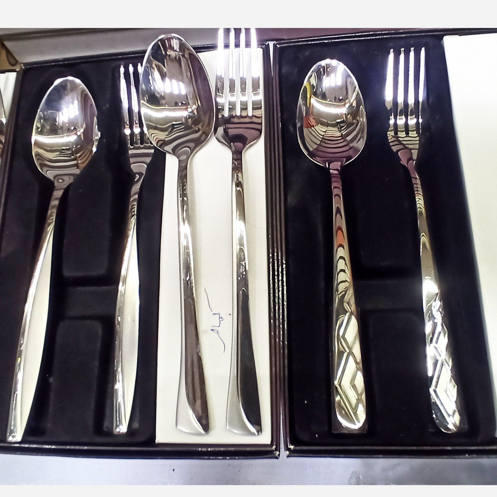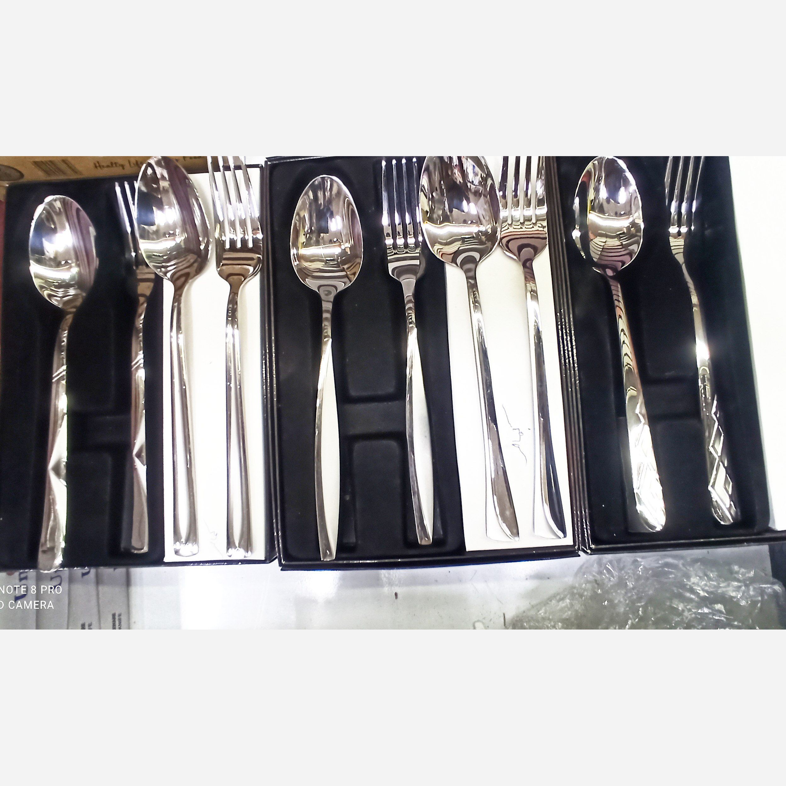 هرجعبه شش قاشق باشش عدد چنکال قبل خرید هماهنگ کنین بعد هماهنگی خریدانجام بشه وزن هرجعبه حدود700گرمی استیل اهنربانگیر دوتا طرح کناری موجوده 1403/08 بروز موجودی بگیرین