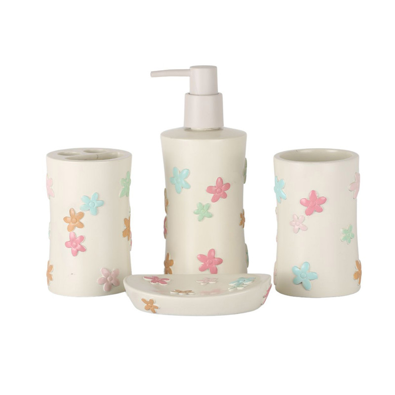 جا مسواکی:۱۱.۵*۷*۷ پمپ مایع:۱۹*۸*۸ لیوان:۱۱.۵*۷*۷ جا صابونی:۱۱.۵*۹*
