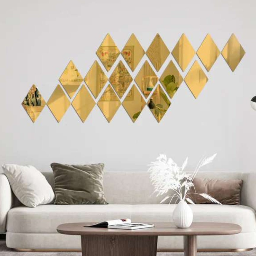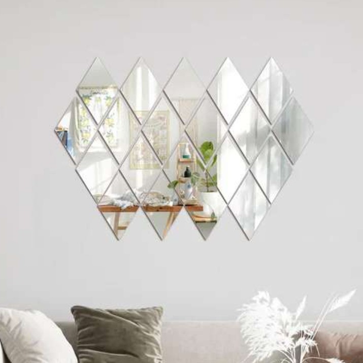آینه دکوراتیو مدل لوزی سایز هر لوزی 10 سانت مجموعه 12 عددی مبلمونسرا مدل 262901