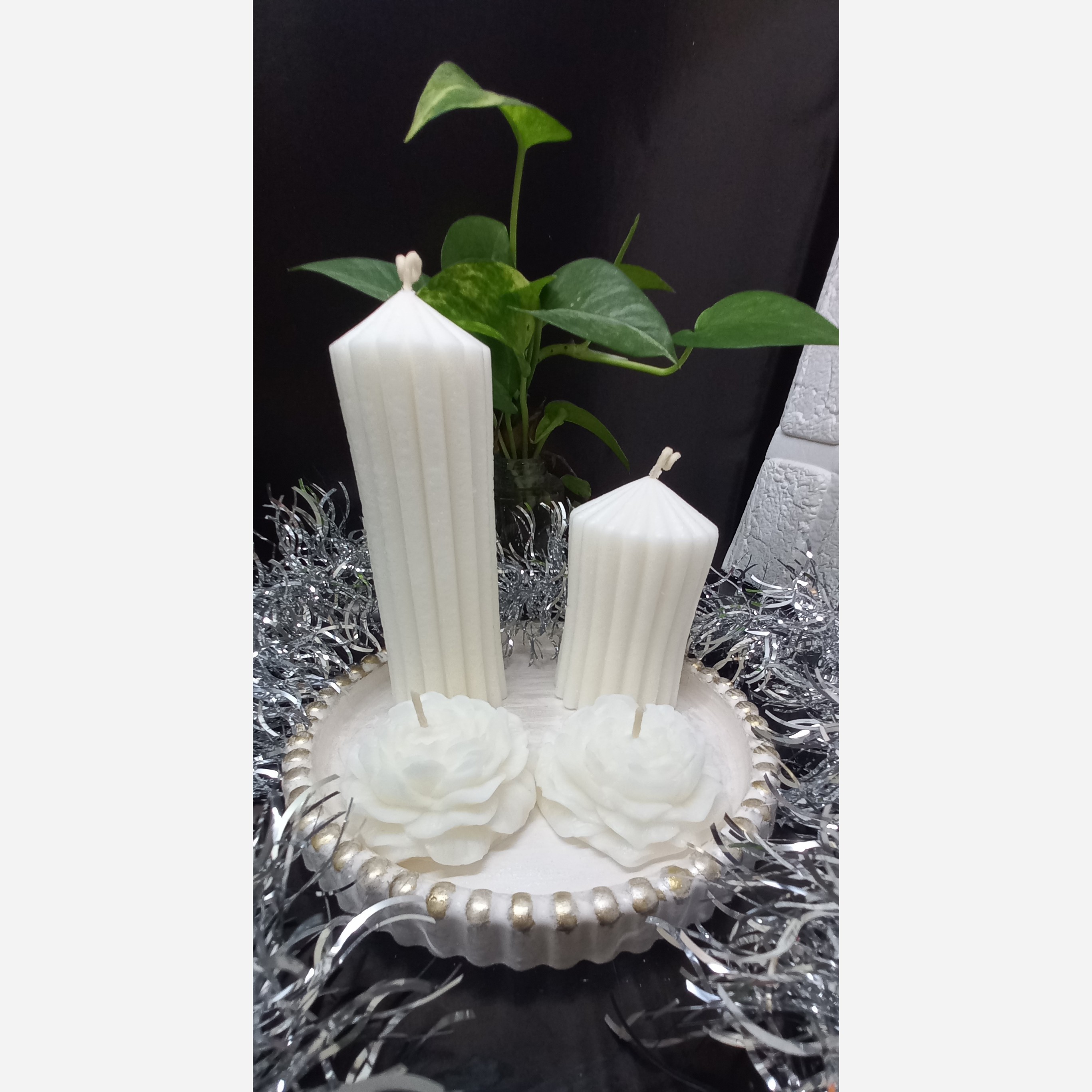 سینی 17×17 شمع ها پیچ و صدف10 سانت داره استوانه ای بزرگ15