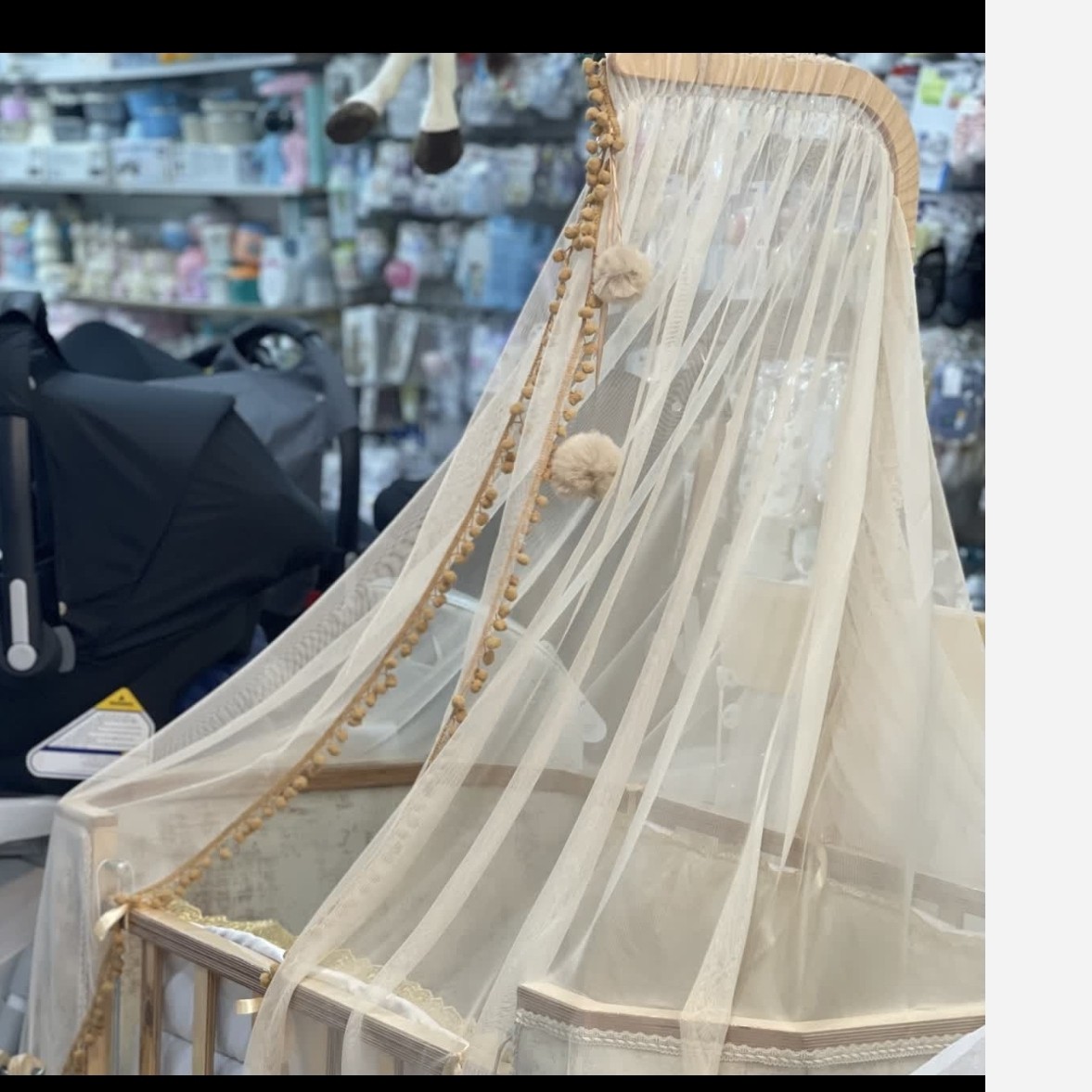 جنس چوب بهمراه تور تخت و تشک و بالش و پتو قابلت تکان خوردن بعنوان گهواره و ثابت شدن برای تخت مناسب تا 8 سالگی
