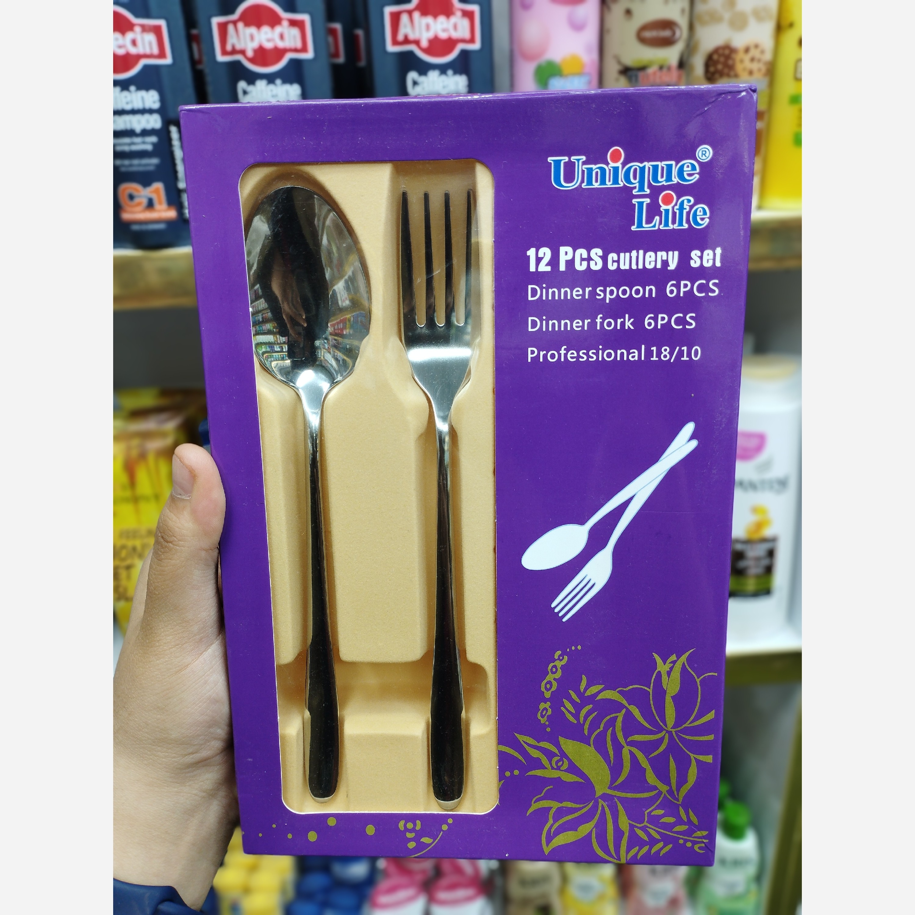 قاشق و چنگال یونیک لایو جعبه بنفش بزرگ 6 عدد قاشق 6 عدد چنگال استیل اصل ضد زنگ مقاوم ارسال مستقیم از بندر گناوه