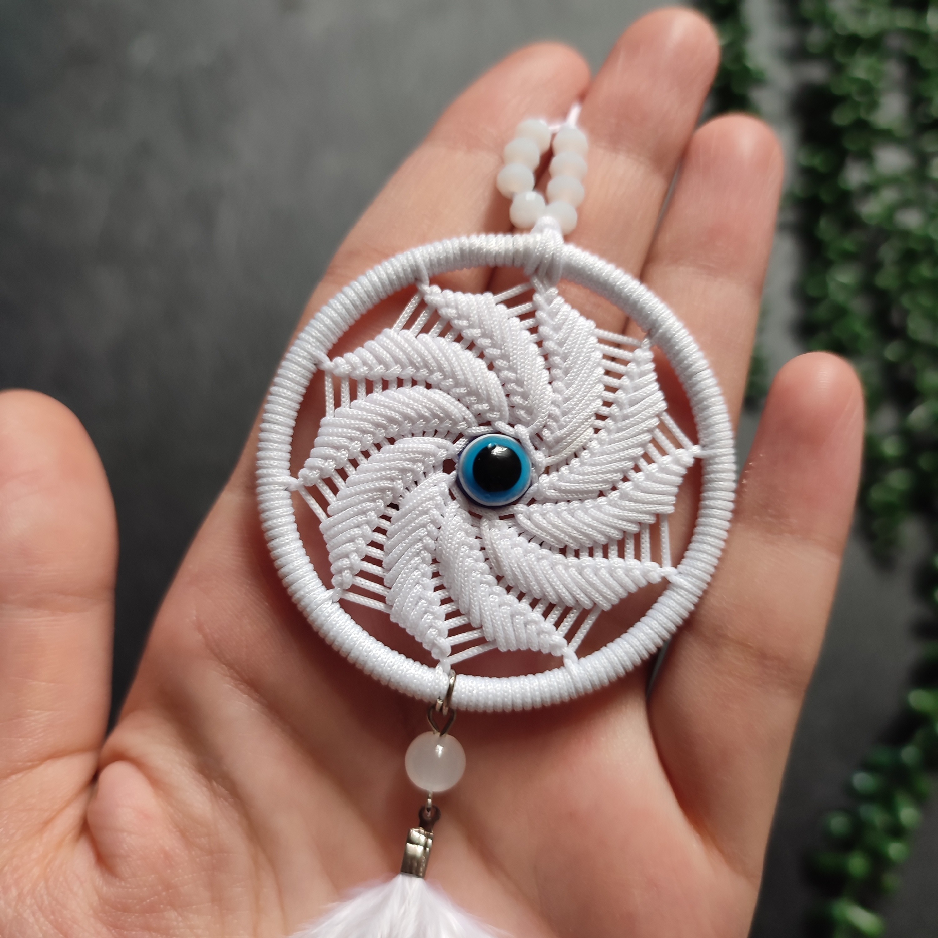 آویز آینه ماشین چشم نظر سفید مبلمونسرا مدل 259838