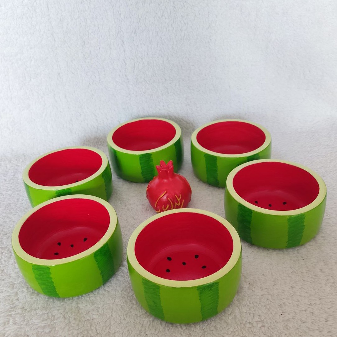 ست پیاله بزرگ و انار یلدایی ، اکسسوری یلدا ، ظرف پذیرایی طرح هندونه یلدا ، سفره یلدا ، ست یلدایی ، آجیل خوری یلدایی مبلمونسرا مدل 264684