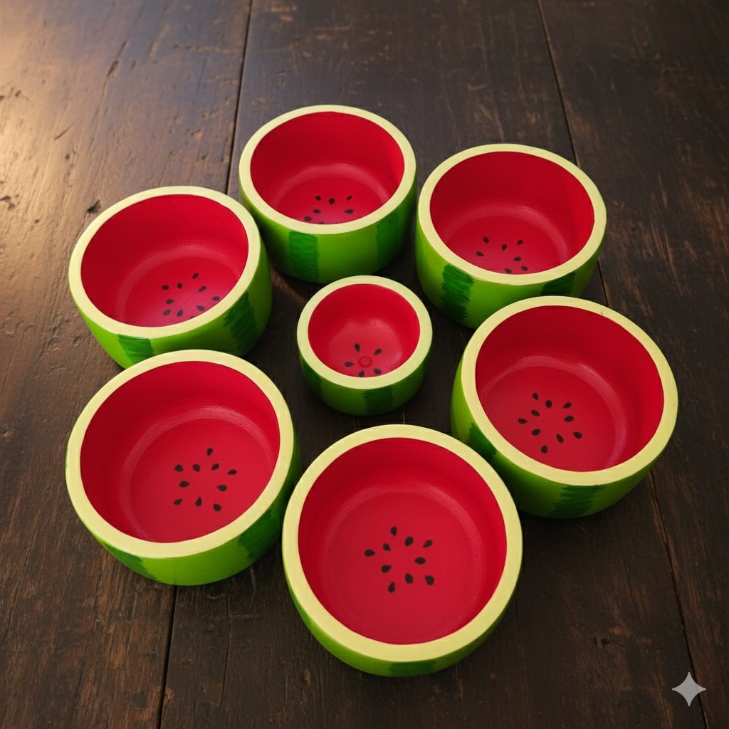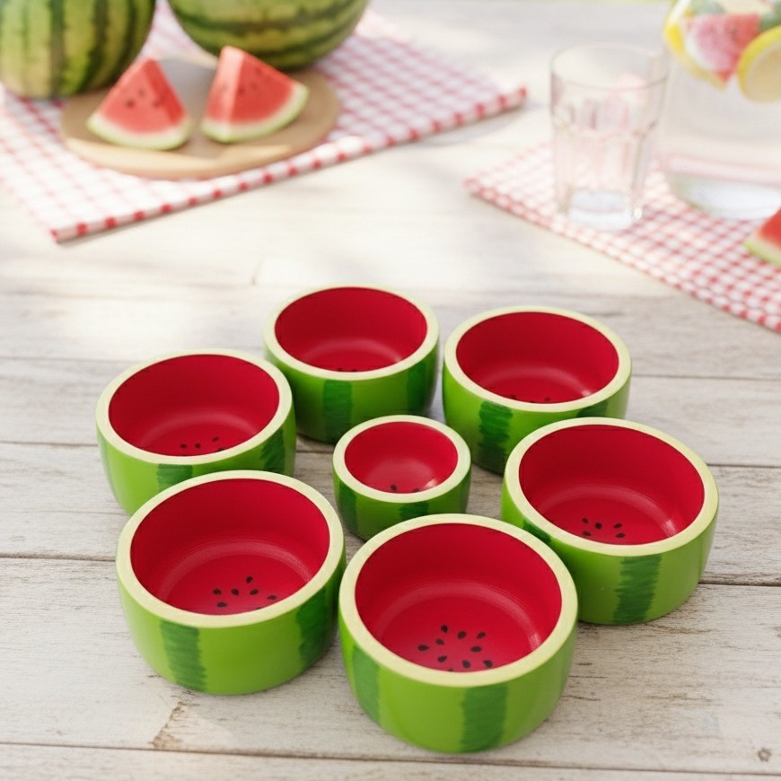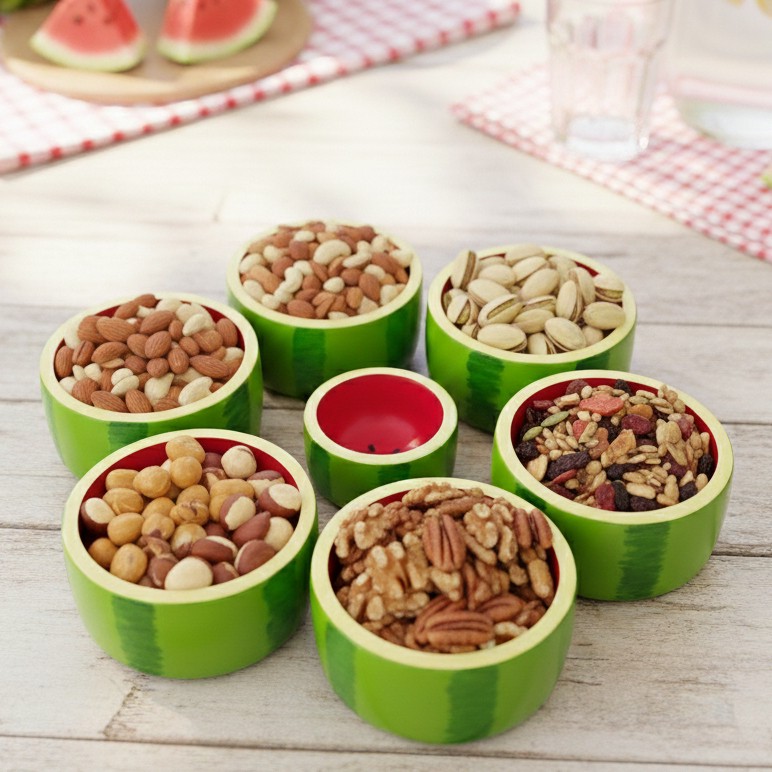 ست پیاله بزرگ و کوچک یلدایی ، اکسسوری یلدا ، ظرف پذیرایی طرح هندونه یلدا ،ست سفره یلدا ، ست یلدایی ، آجیل خوری یلدایی مبلمونسرا مدل 265235