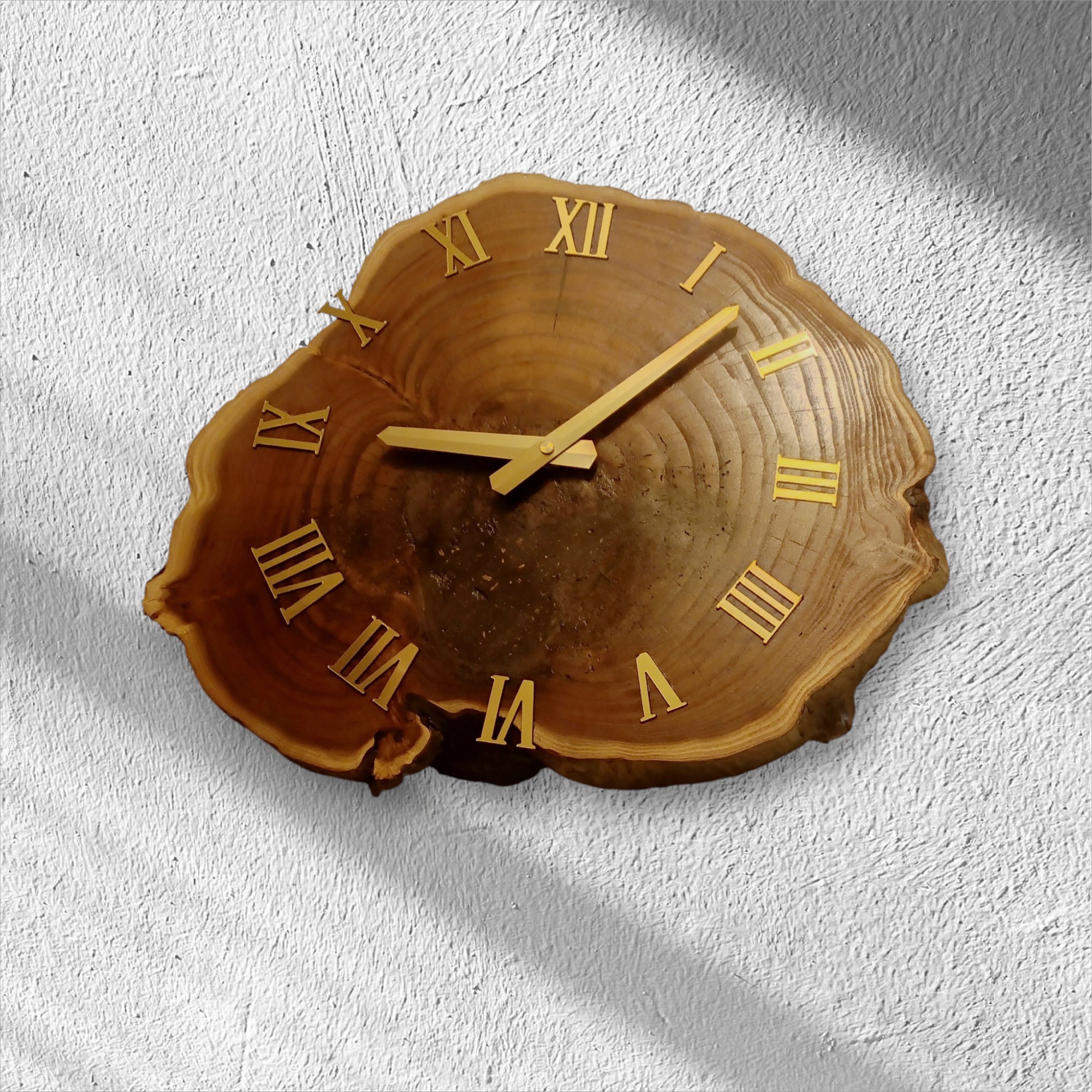 ساعت دیواری چوبی دفرمه روستیک چوب سنجد مبلمونسرا مدل 238492
