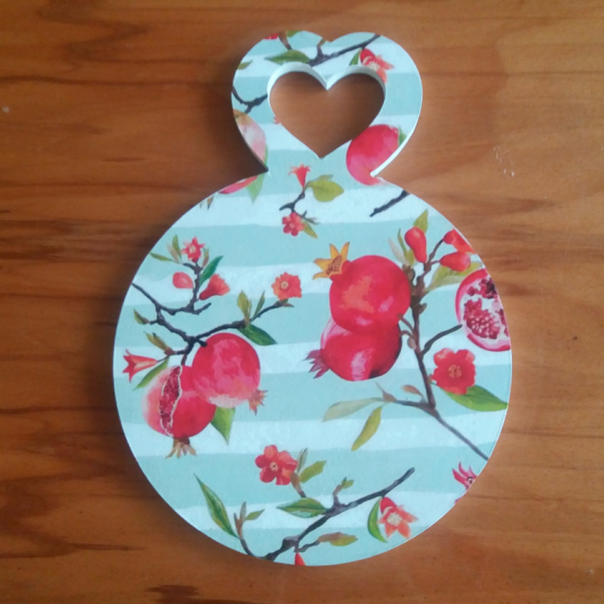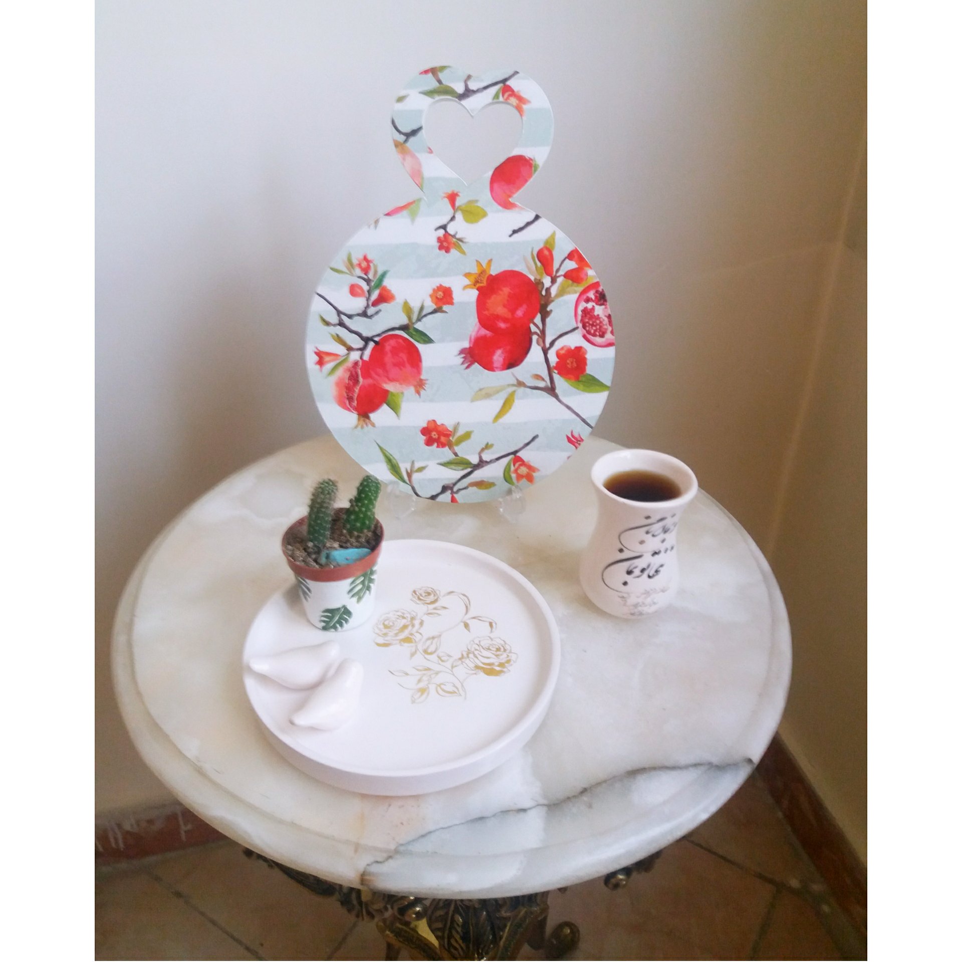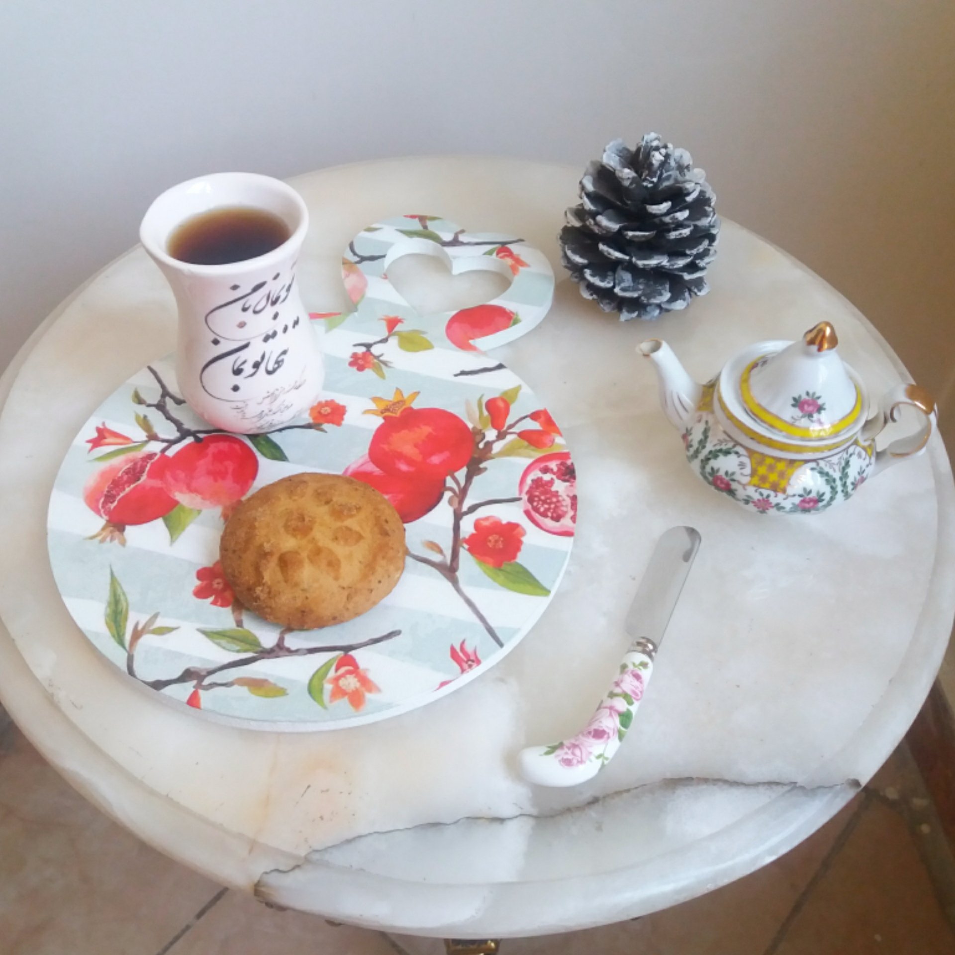 تخته سرو چوبی با طرح طبیعت و شاخه های اناری، از محصولات هنری و دستساز گالری بارون هست که با تکنیک دکوپاژ و نقاشی به اجرا درآمده. این محصول به رنگ سفید رنگآمیزی شده و در مرحله نهایی این تخته دکوراتیو با مواد تثبیت کننده کاور شده و قابلیت شستشو دارد.حنما پس از شستشو با پارچه نخی آبگیری شود تا دوام بیشتری داشته باشد. از این تخته سرو به عنوان تابلوی رومیزی آشپزخانه هم میتوان استفاده کرد. مناسب برای سرو نان، کیک، پیتزا، میوه، ماگ و لیوان. با قرار گرفتن روی پایه به عنوان تابلوب دکوری میتوان فصای آشپزخانه را آراسته کرد. ابعاد تخته چوبی فانتزی میباشد. جهت ست کردن، این طرح اناری خاص را میتوان روی زیر لیوانی، جعبه تیبگ و سینی چای نیز اجرا کرد. محصولات شیک چوبی، بهترین هدیه برای مناسبتهای یلدایی دوستان با سلیقه شماست.