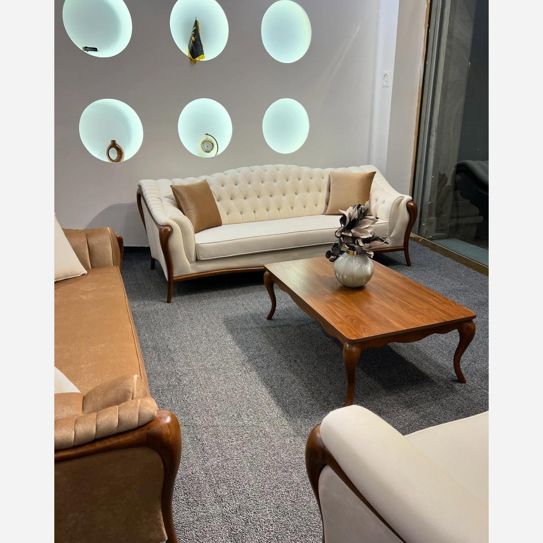 مبل راحتی مدل آوانگارد 8نفره چوب راش رنگ چوب و پارچه به سلیقه مشتری میباشد