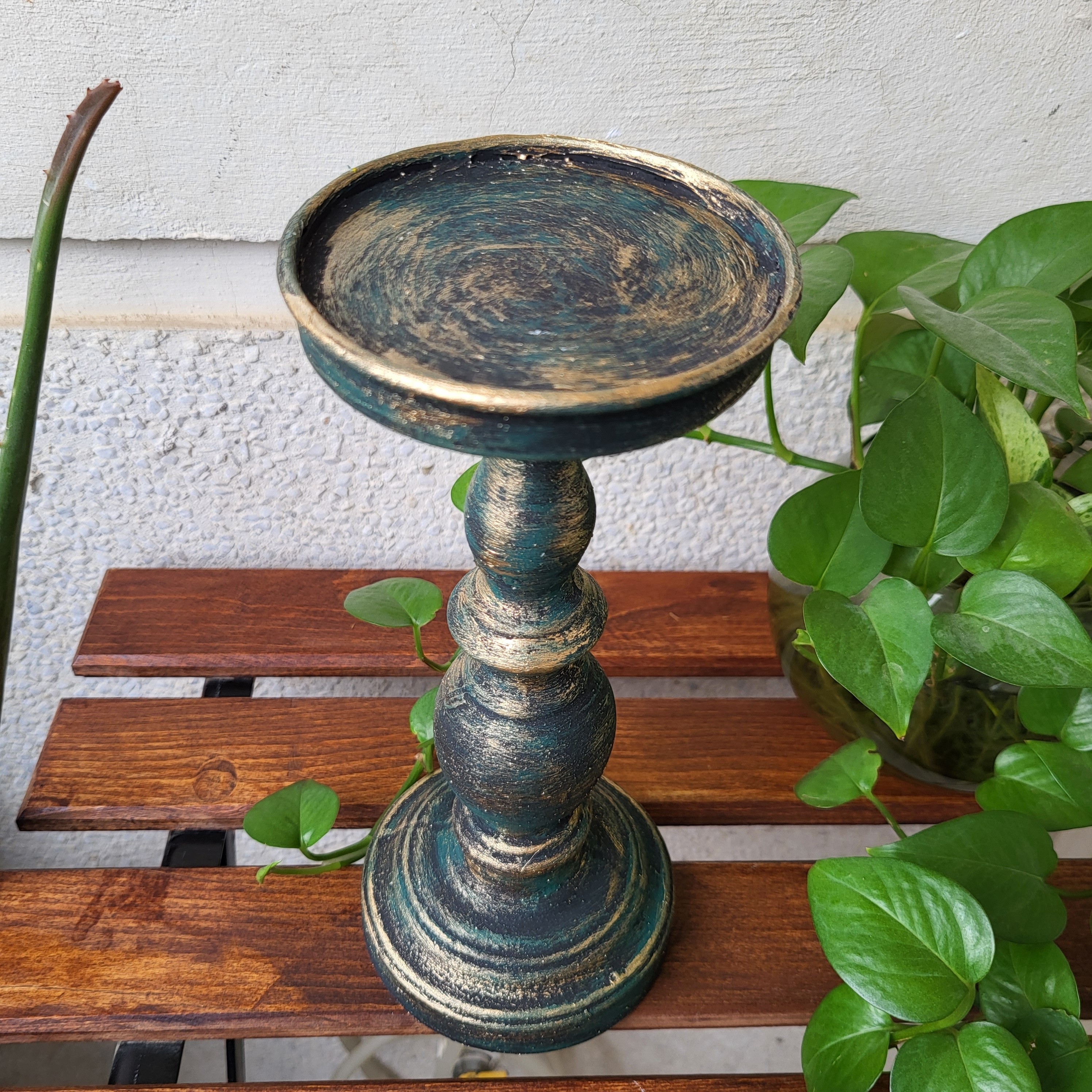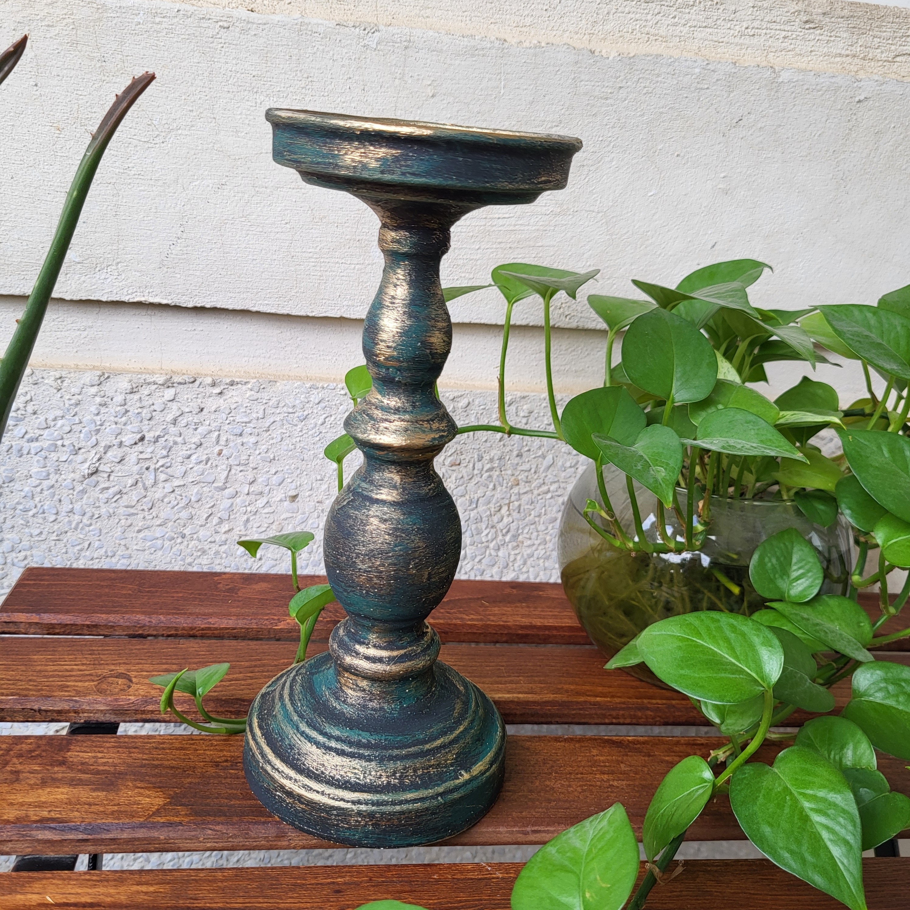 جاشمعی پایه بلند سبز و طلایی و مشکی مبلمونسرا مدل 285981