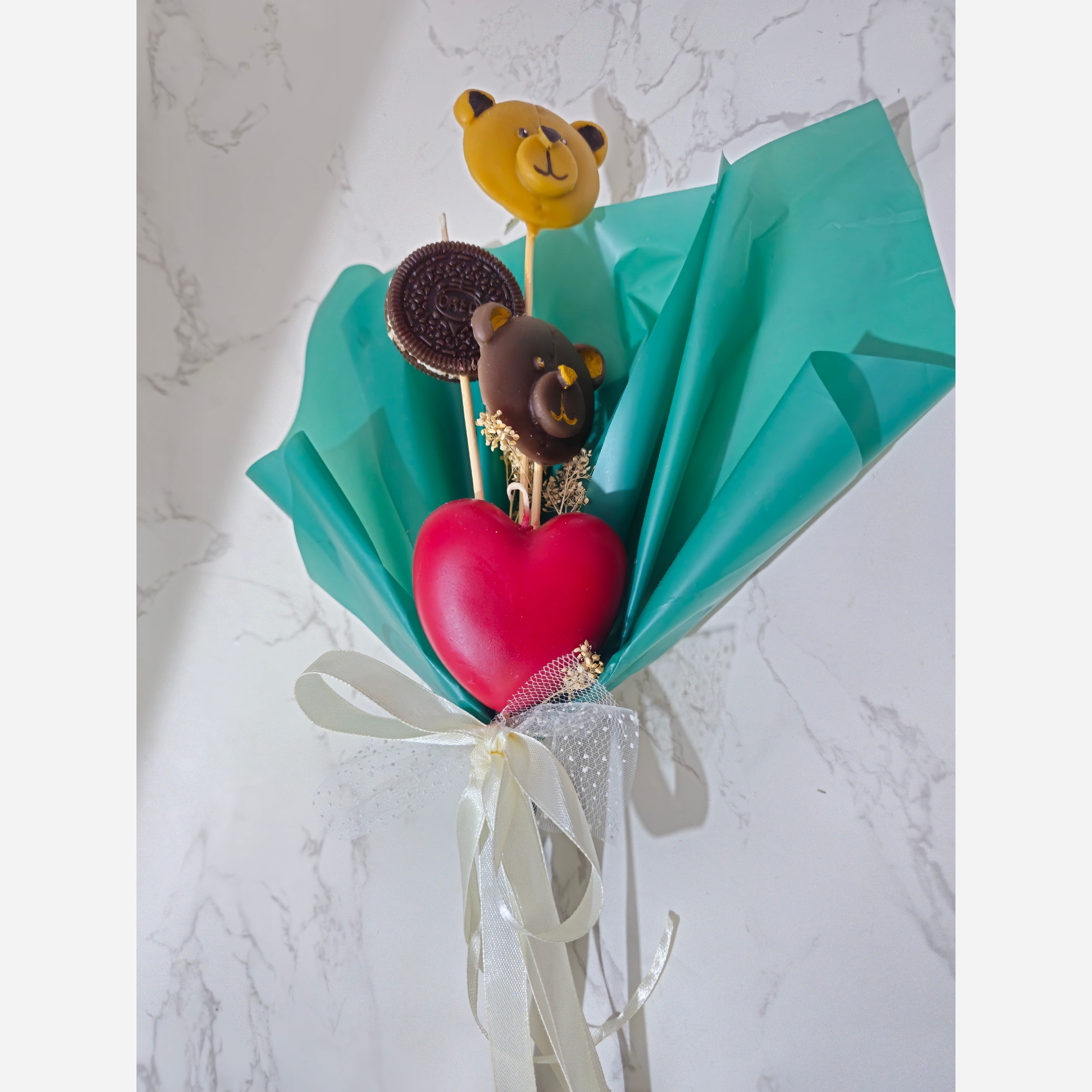 شمع دسته گل تدی و قلب و بیسکوییت اورئوولنتاین مبلمونسرا مدل 284305