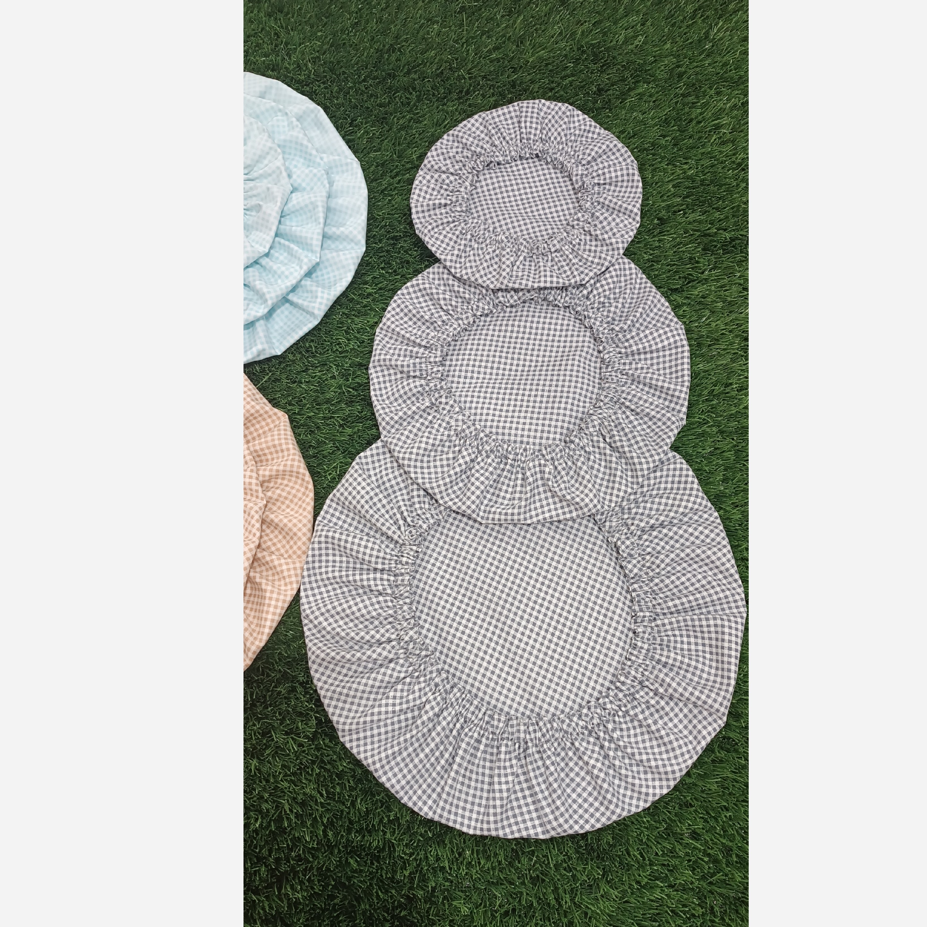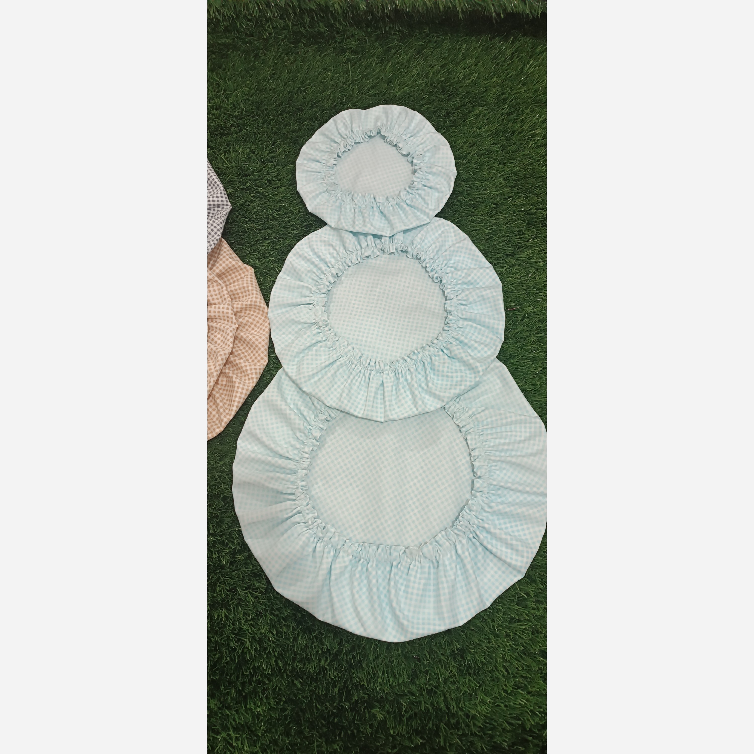 دم کنی در سه سایز و دو رو قابل استفاده از هر دو طرف جنس پارچه کتان نخ رنگ بندی در سه رنگ