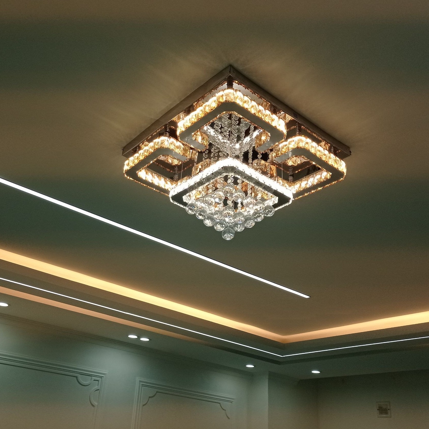 لوستر سقفی مدرن تمام استیل دارای چهار حالت نوردهی قابلیت اتصال به گوشی
