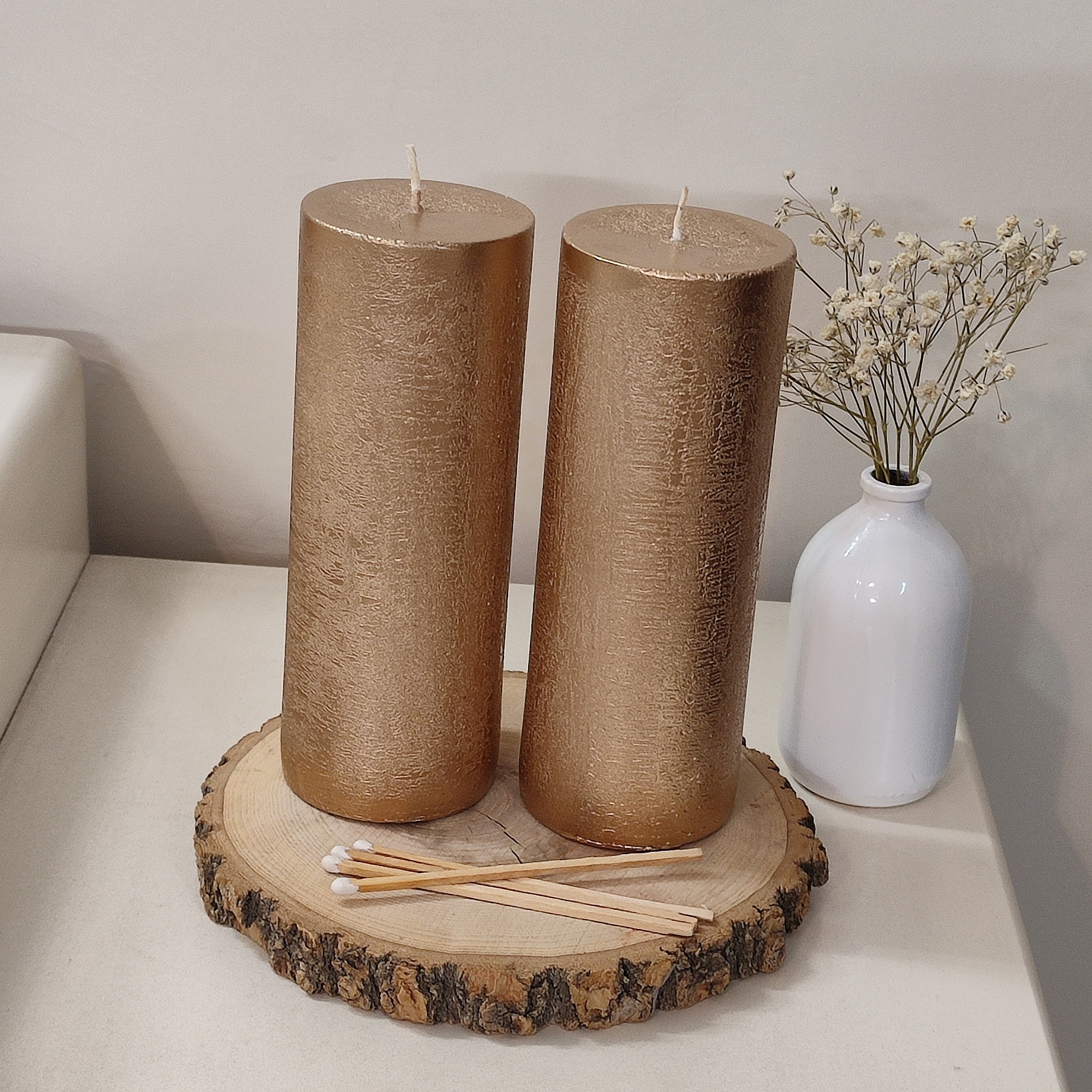 شمع استوانه رنگ طلایی مبلمونسرا مدل 286599