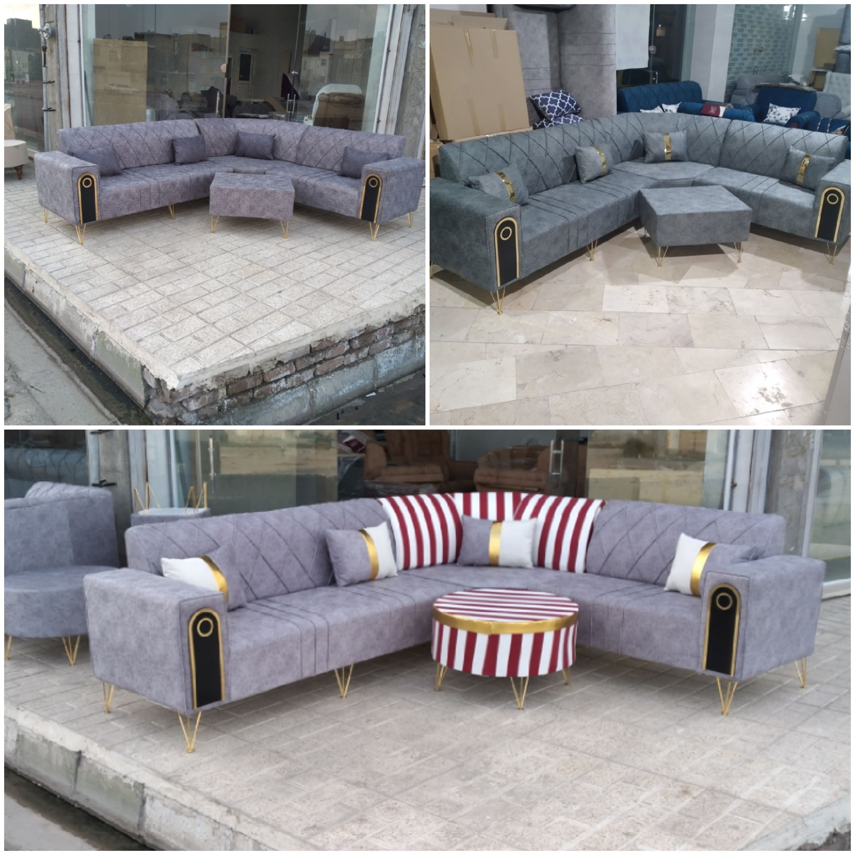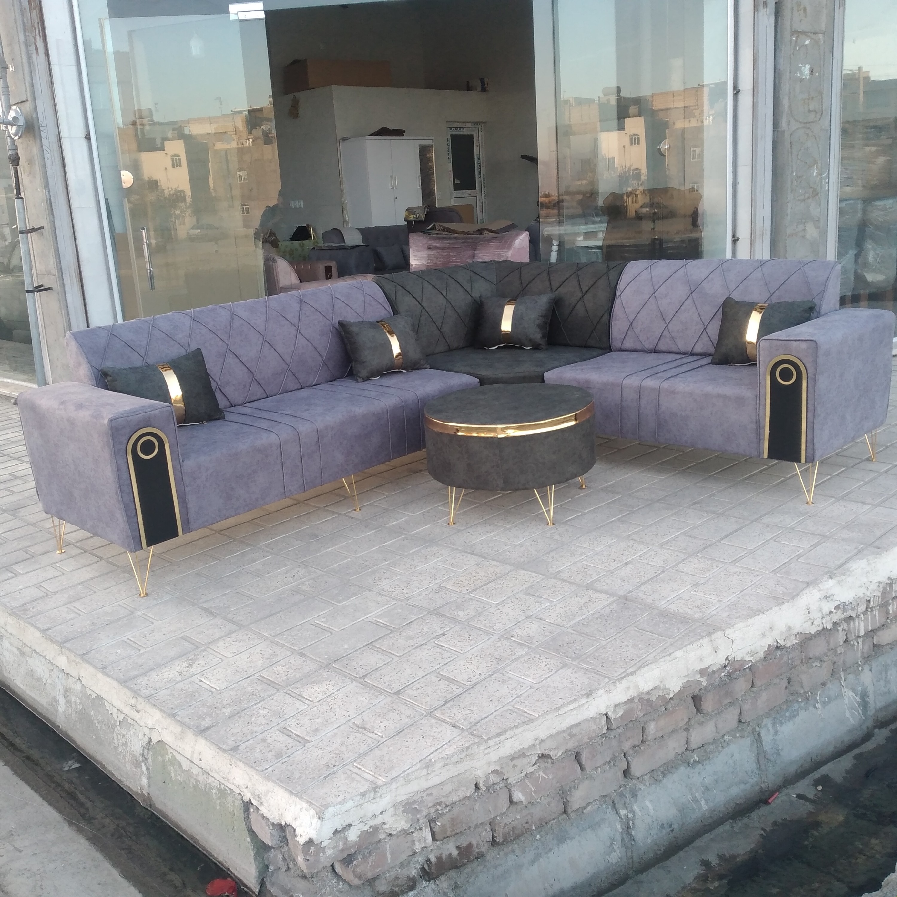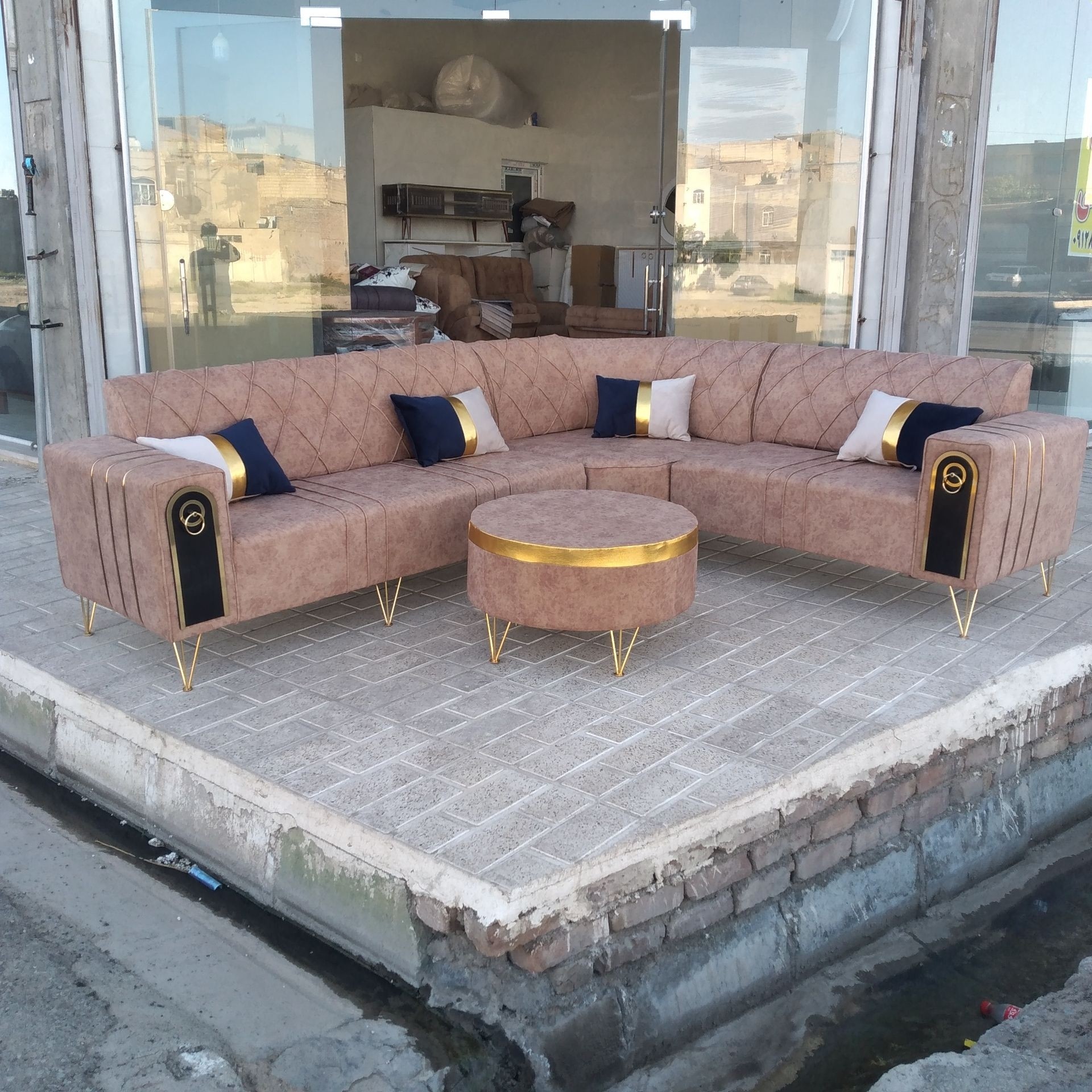 مبل ال کمجا پایه فلزی پارچه مسکو زرین مبلمونسرا مدل 211224