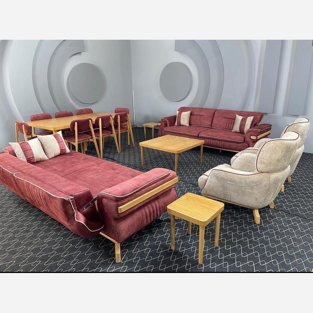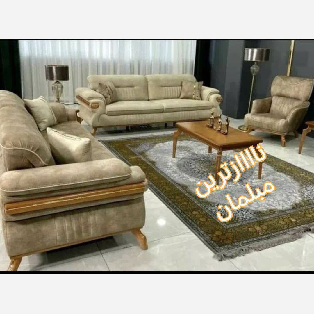 مبل لورنت ترکیب 8 نفره کلاف چوب روسی کف اسفنج 35 کیلو ویژه دسته ها اسفنج 25 کیلویی ترکیب 3+3+1+1 مکانیزم همون تخت شو پارچه فستو و دیاموند