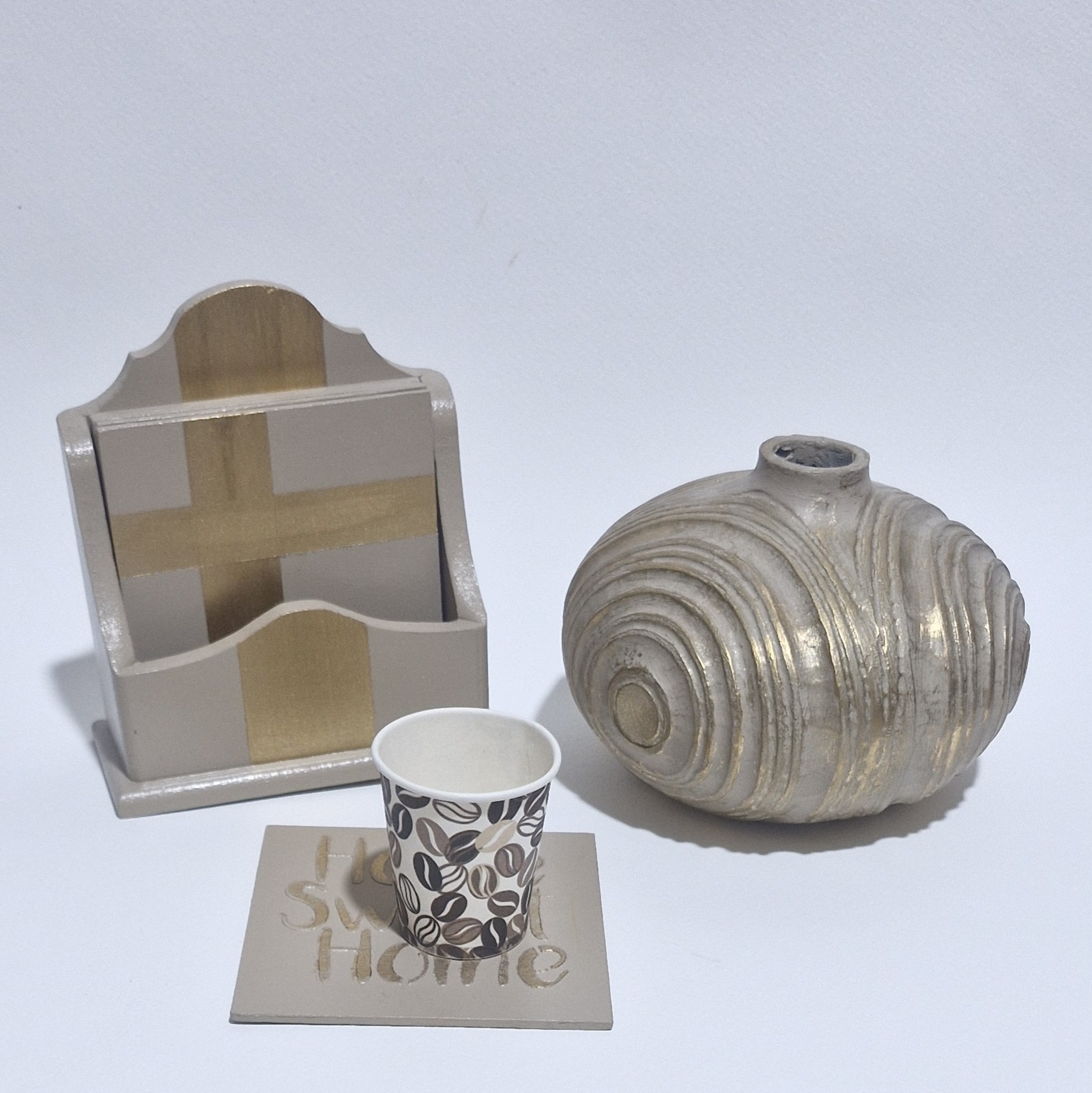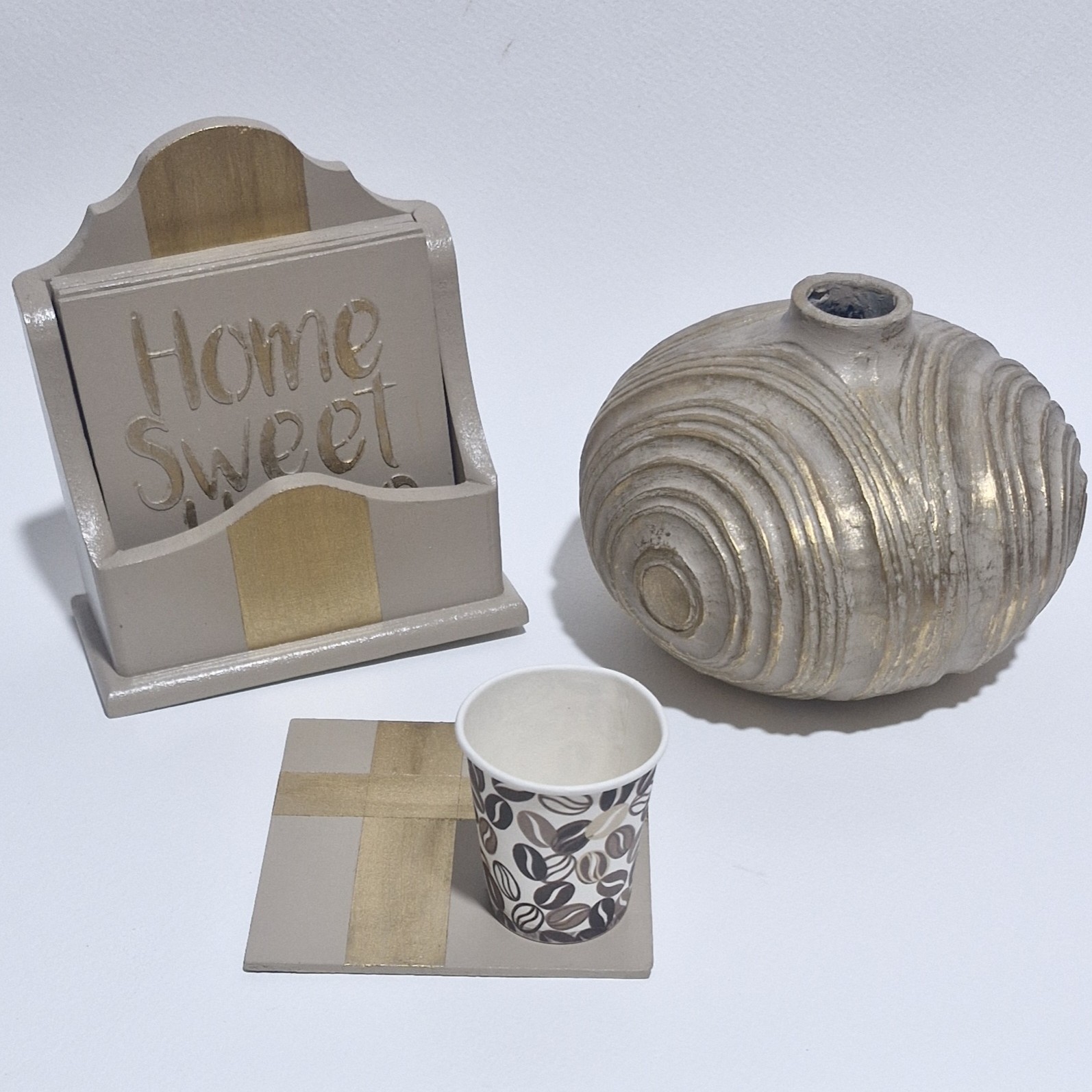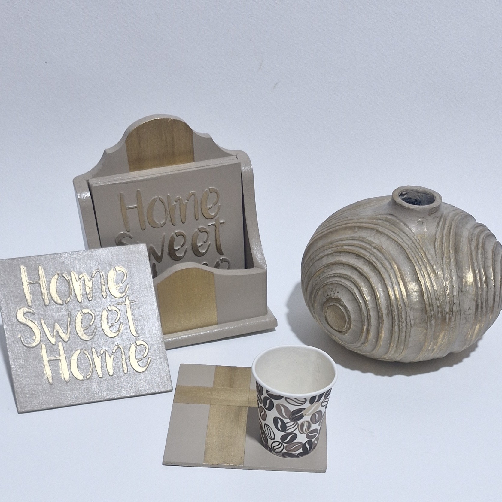 شیک ، خاص و کاربردی👍🏻 زیرلیوانی با طرح برجسته Home sweet home رنگ : شیرنسکافه ای ، طلایی طرح : یک سمت متن برجسته ، سمت دیگه فلت ورق طلا قابل نظافت با دستمال نم کار آبگریز
