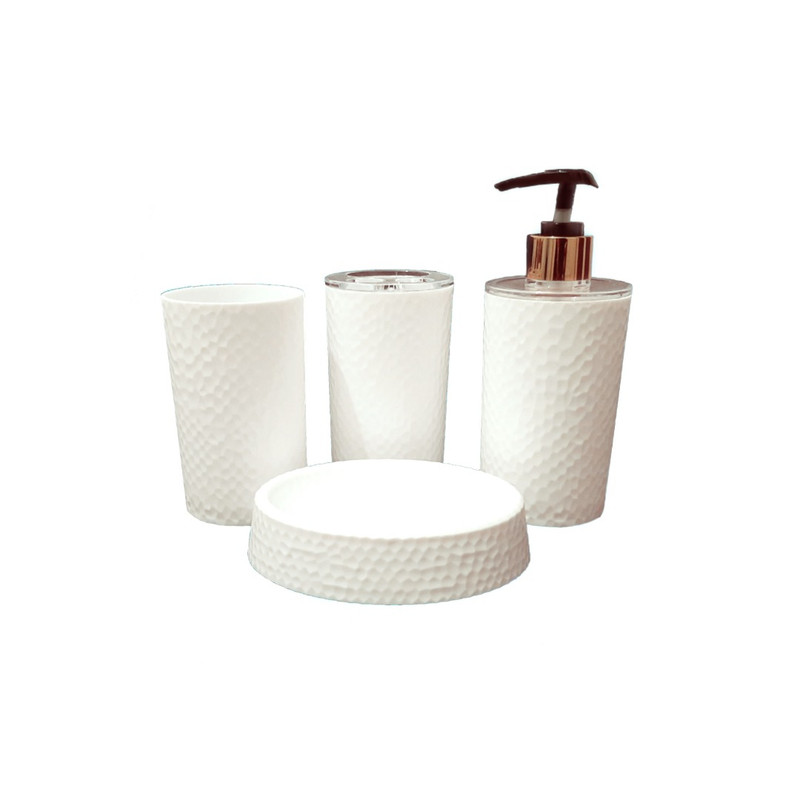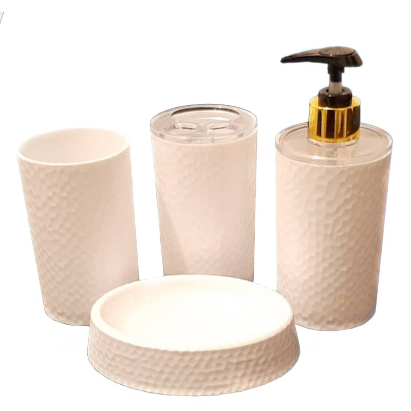 سِت سرویس بهداشتی 4 تکه، شامل ظرف مایع دستشویی فشاری، جاصابونی، جامسواکی و یک لیوان جهت قرار دادن لوازم آرایشی می باشد که از پلاستیک فشرده ساخته شده اند. این ست با ظاهر زیبا از کیفیتی مطلوب و قیمتی مناسب برخوردار است و به شما این امکان رو میدهد تا به آسانی با صرف هزینه ای کم، تغییری مطلوب در ظاهر سرویس بهداشتی خودتان ایجاد کرده و نظم و بهداشت فضا را تأمین نمایید. با توجه به کوچک بودن فضای سرویس بهداشتی، استفاده از اکسسوری های مناسب، موجب استفاده بهینه از فضا و جلوه گرفتن آن می شود.