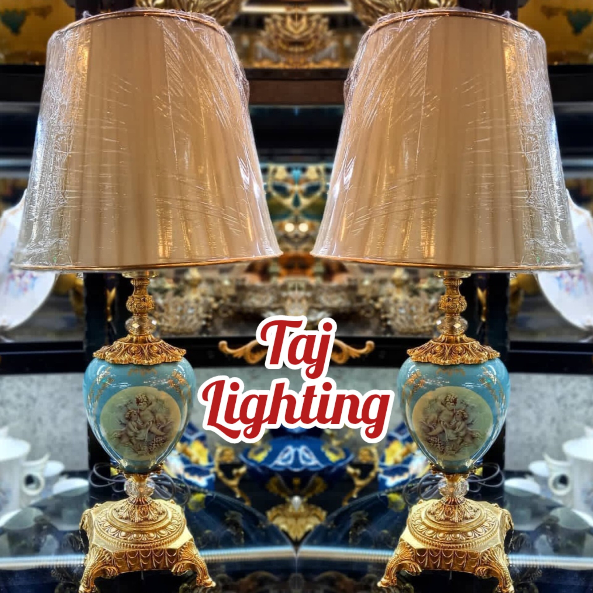💥قیمت درج شده ، قیمت هر عدد آباژور می باشد جنس شید : پارچه ای پلیسه ای رنگ شید : کِرِم جنس وسط تنه : چینی رنگبندی وسط تنه : سفید، زرشکی، سورمه ای ، فیروزه ای ، یشمی ، صورتی ، مغز پسته ای جنس پایه برنز با آبکاری آنتیک