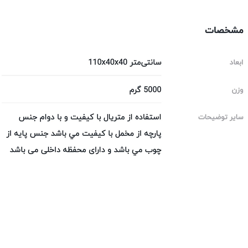 استفاده از متریال با کیفیت و با دوام جنس پارچه از مخمل با کیفیت می باشد جنس پایه از چوب می باشد و دارای محفظه داخلی می باشد