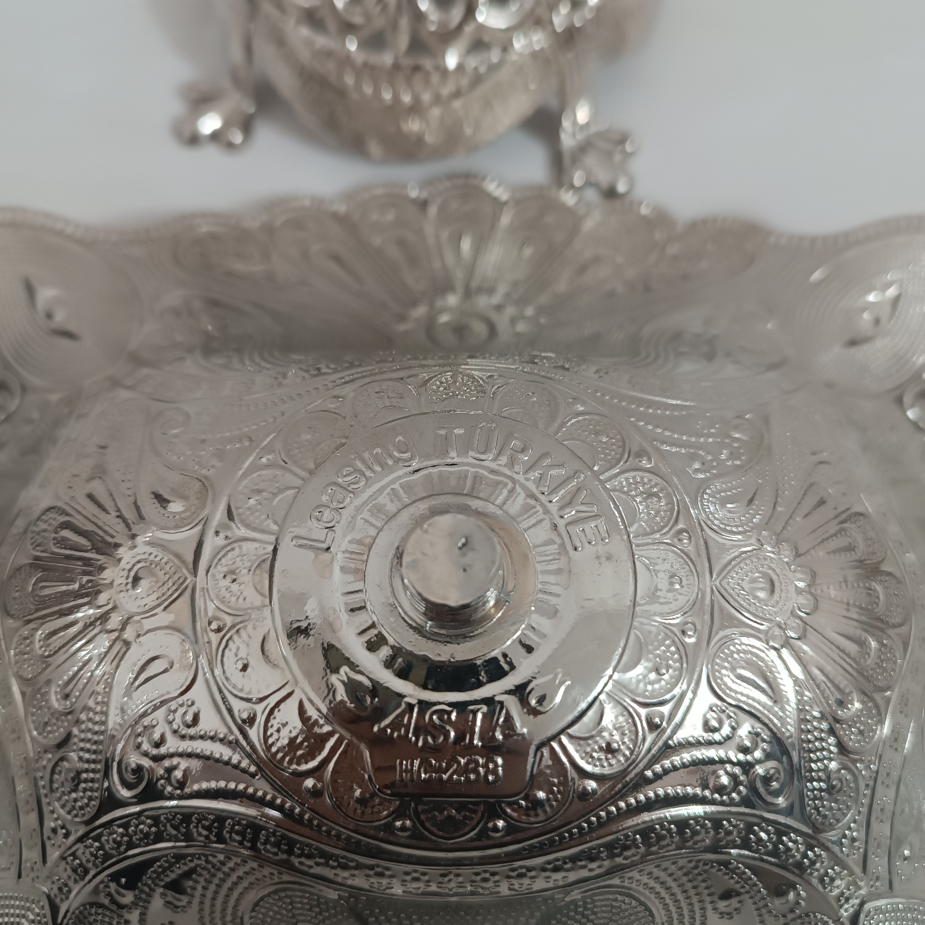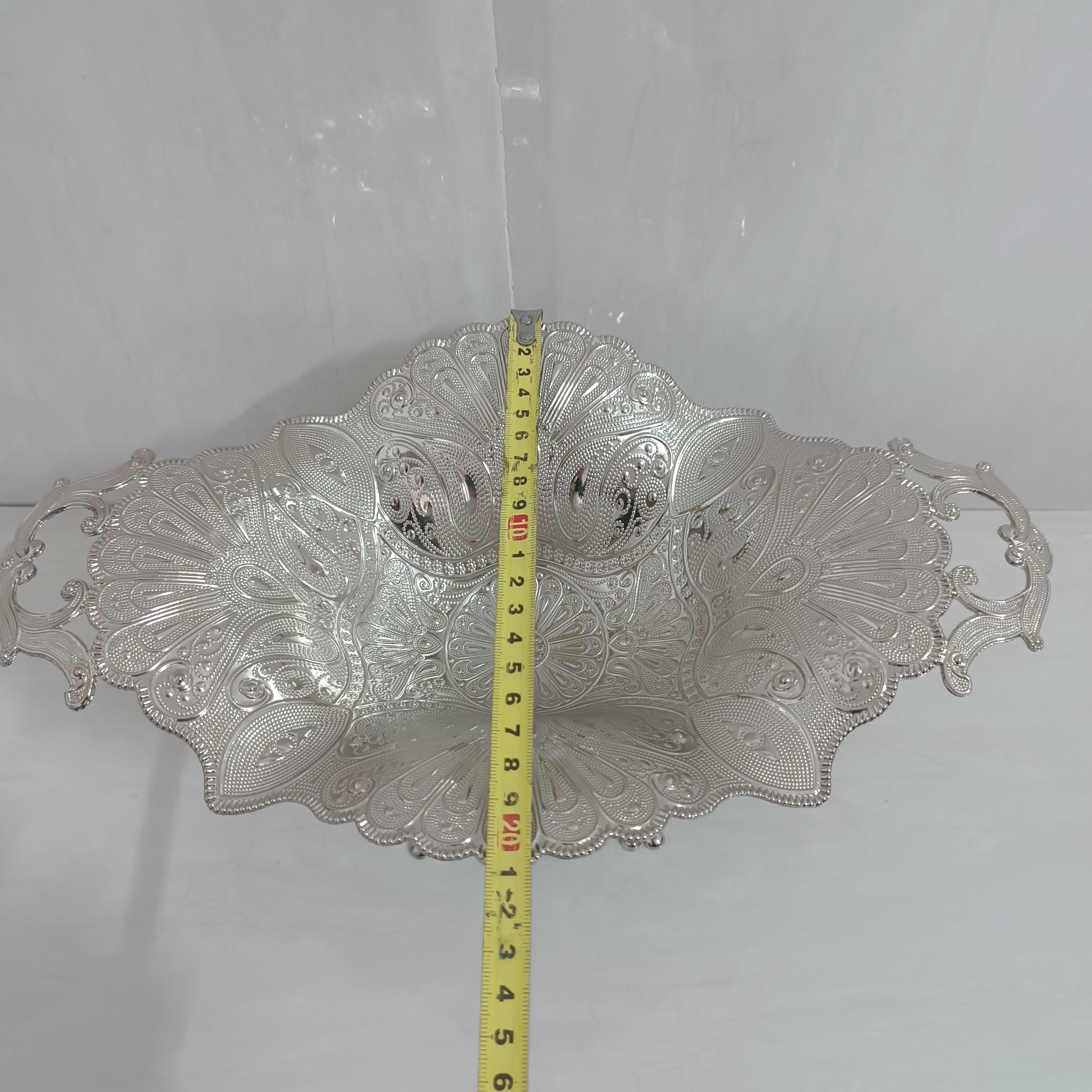 کشکول سیلور مارک آسیا رنگ نقره ای اندازه طول با دسته 35 و عرض 21 سانت ارتفاع 13 سانت ورق ضخیم جنس سیلور کیفیت عالی پایه دار پایه از کشکول جدا میشه و به صورت پیچی به هم وصل شدند بهترین کیفیت آبکاری