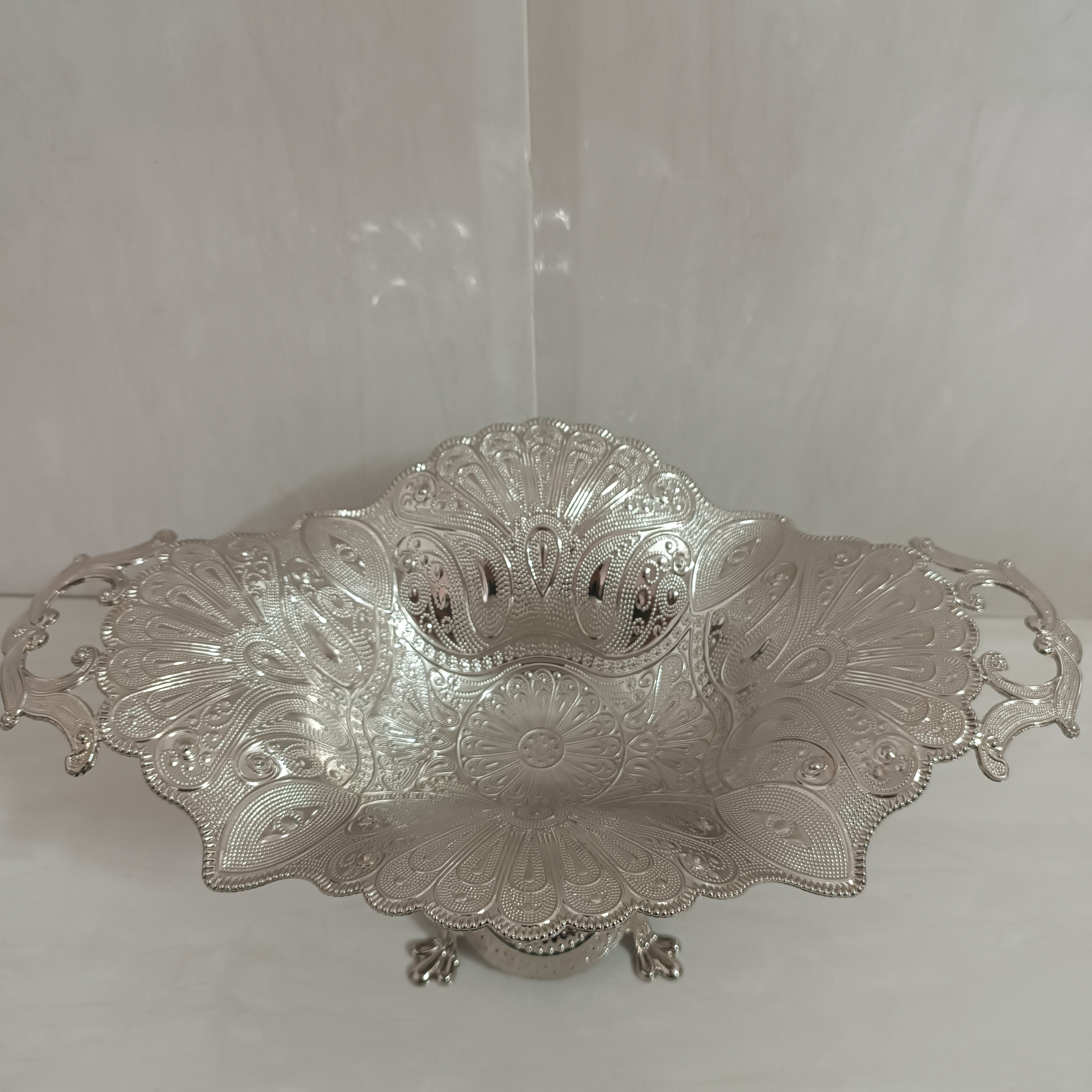 شکلات خوری و میوه خوری سیلور پایه دار مارک آسیا نقره ای مبلمونسرا مدل 295043